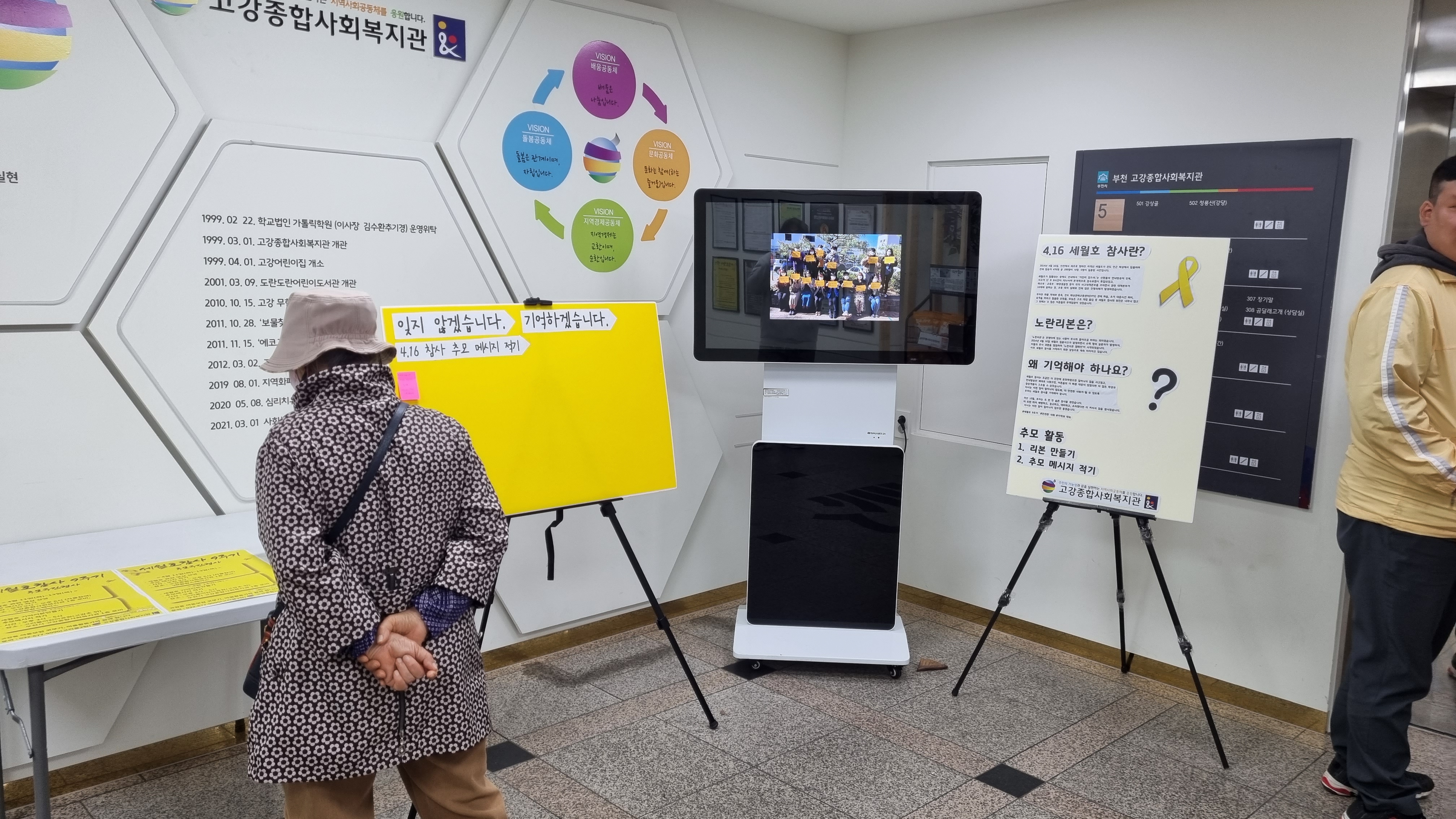 직접 설명하도 하고 같이 추모메시지를 적다보니 어느새 우드락 판이 가득합니다.