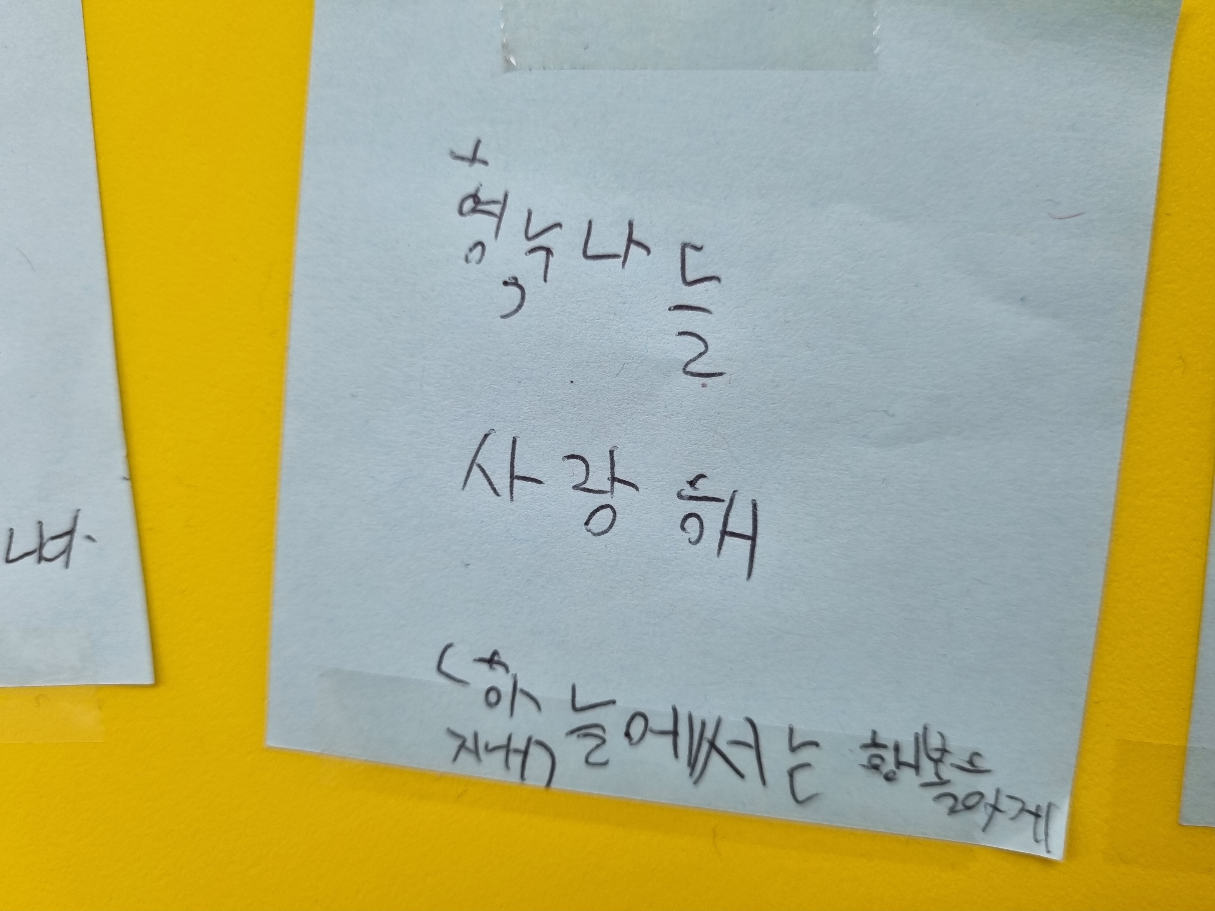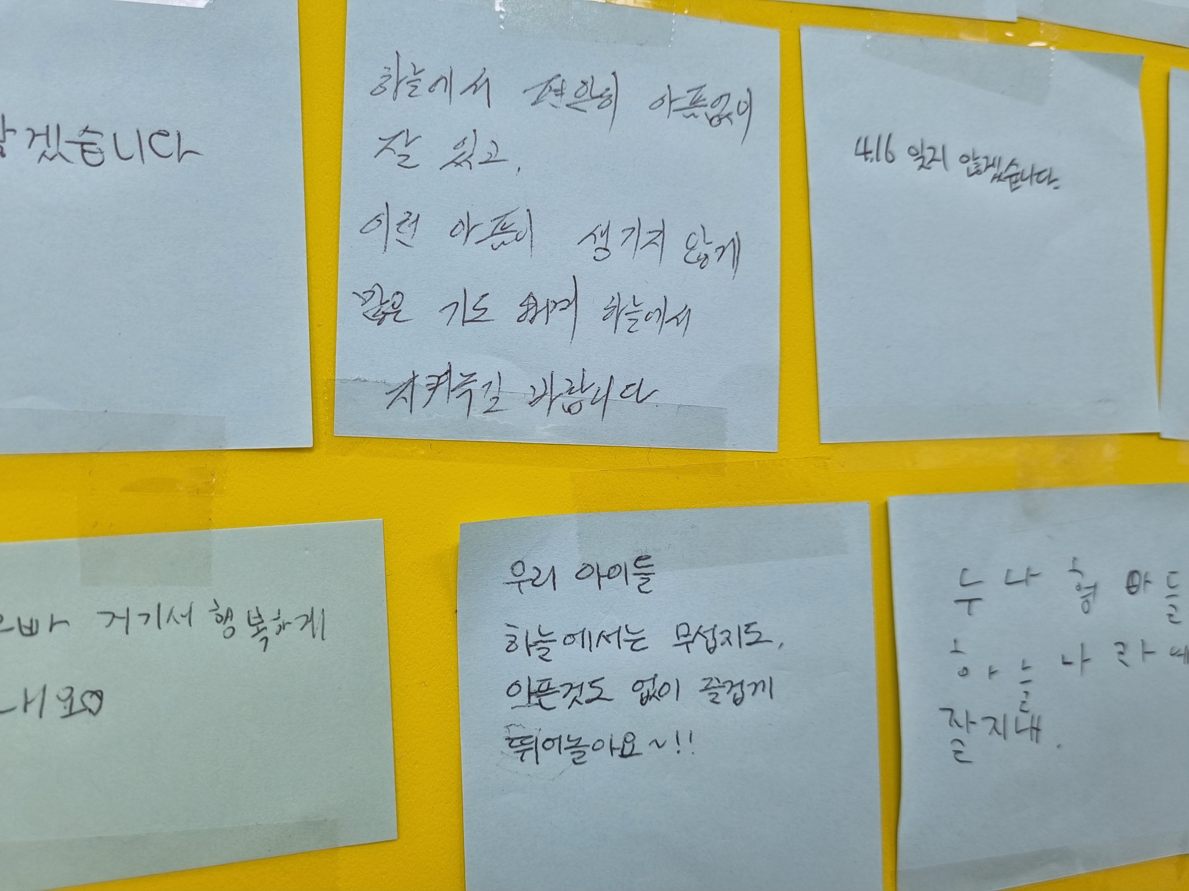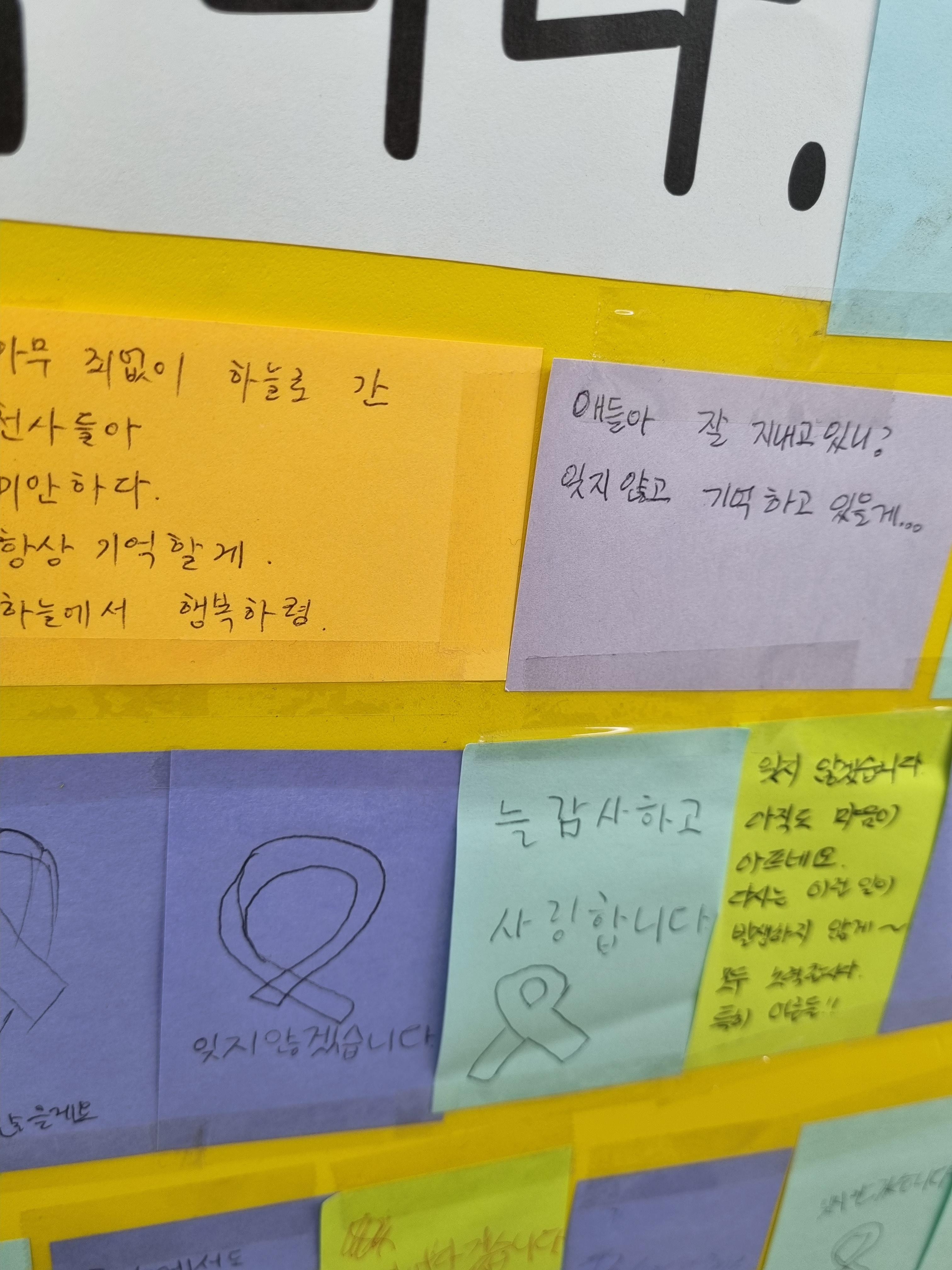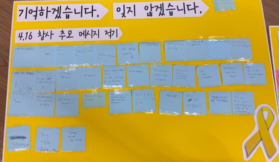 지난 11일(화) ~ 13일(목)은 자율적으로 추모메시지를 적는 시간을 가졌습니다.
