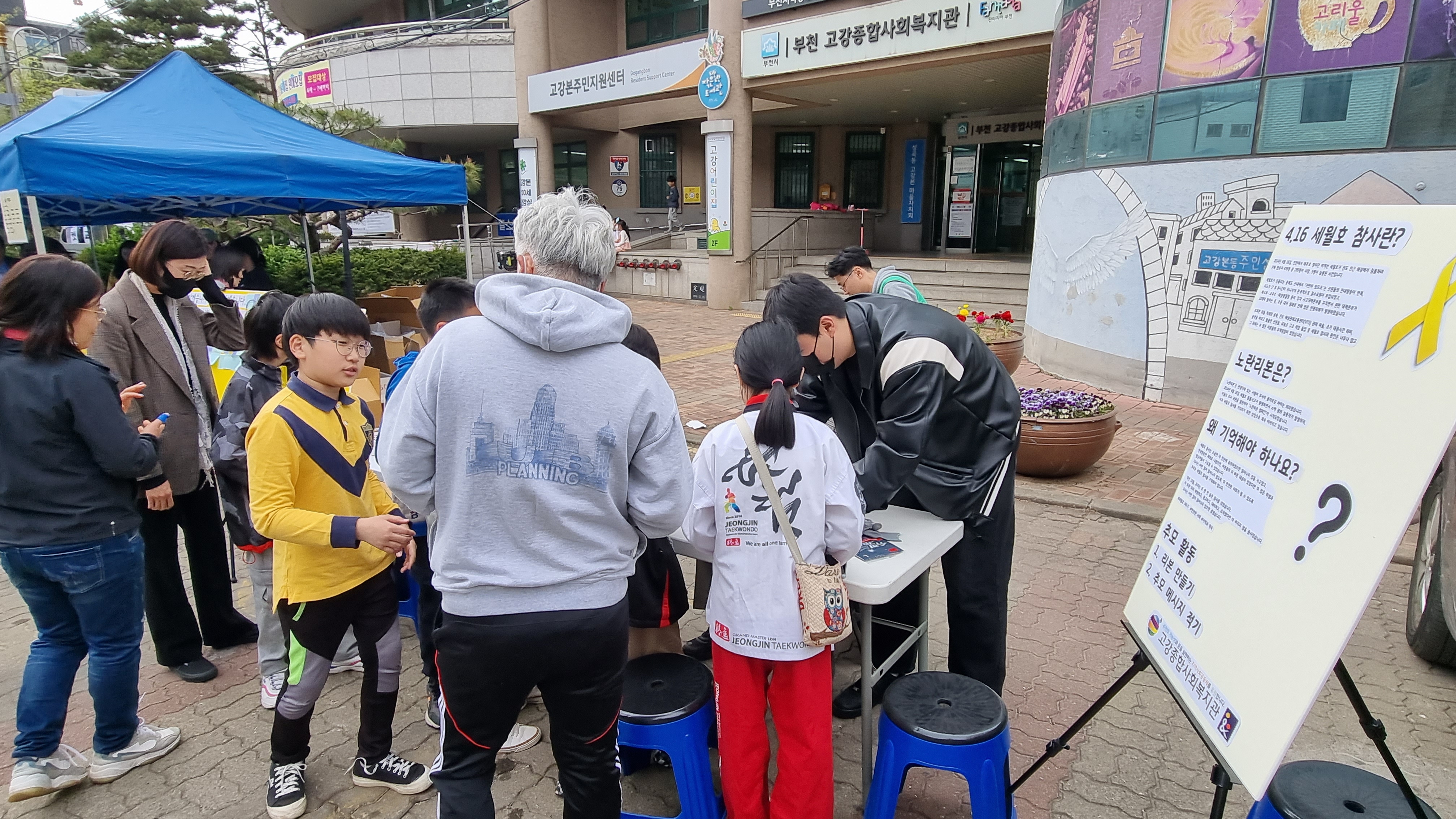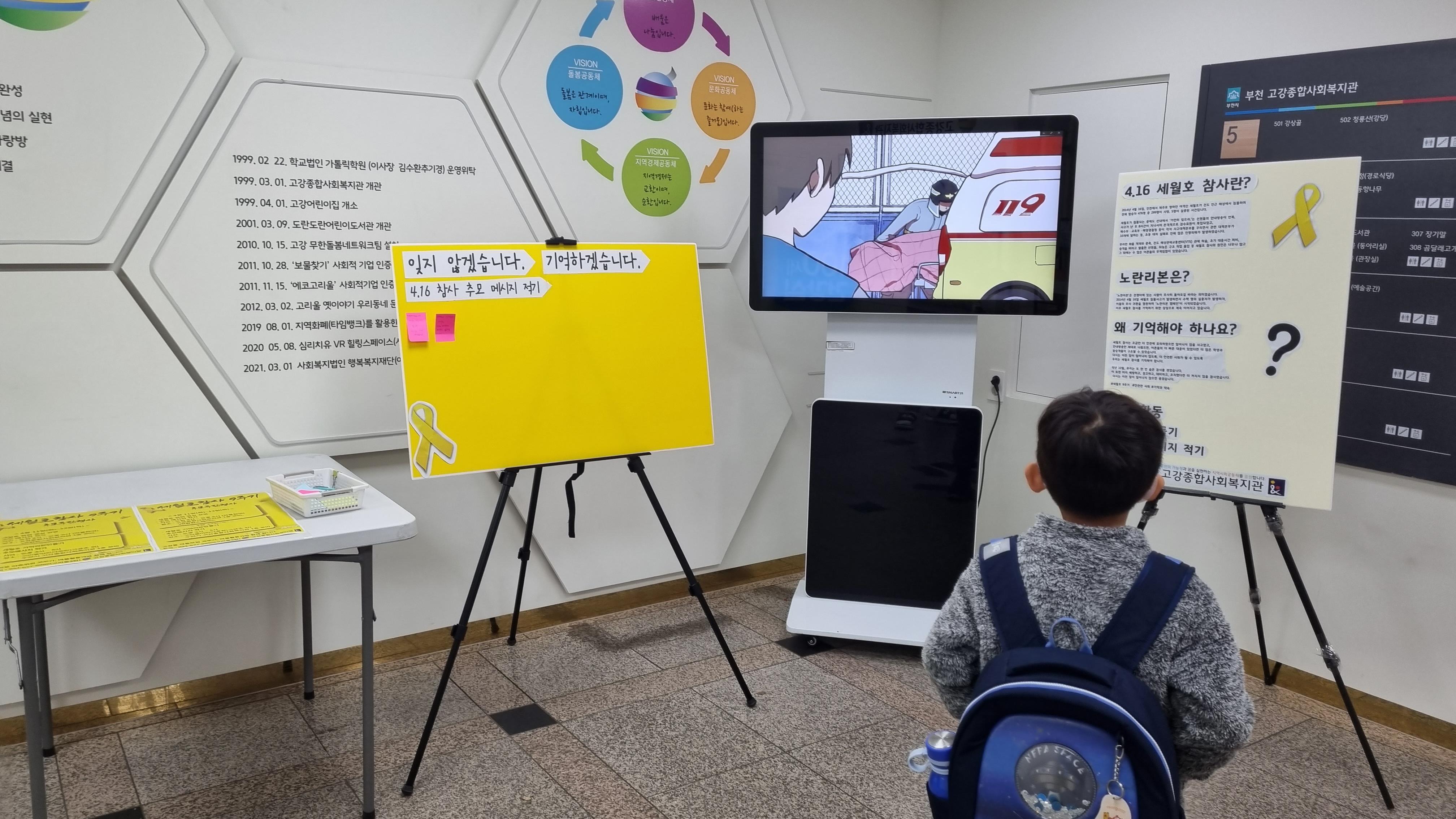 세월호 참사와 관련된 영상을 보고 눈물을 보이는 모습도 있었고, 오가는 아이들, 주민들 많이 참여해주셨습니다.