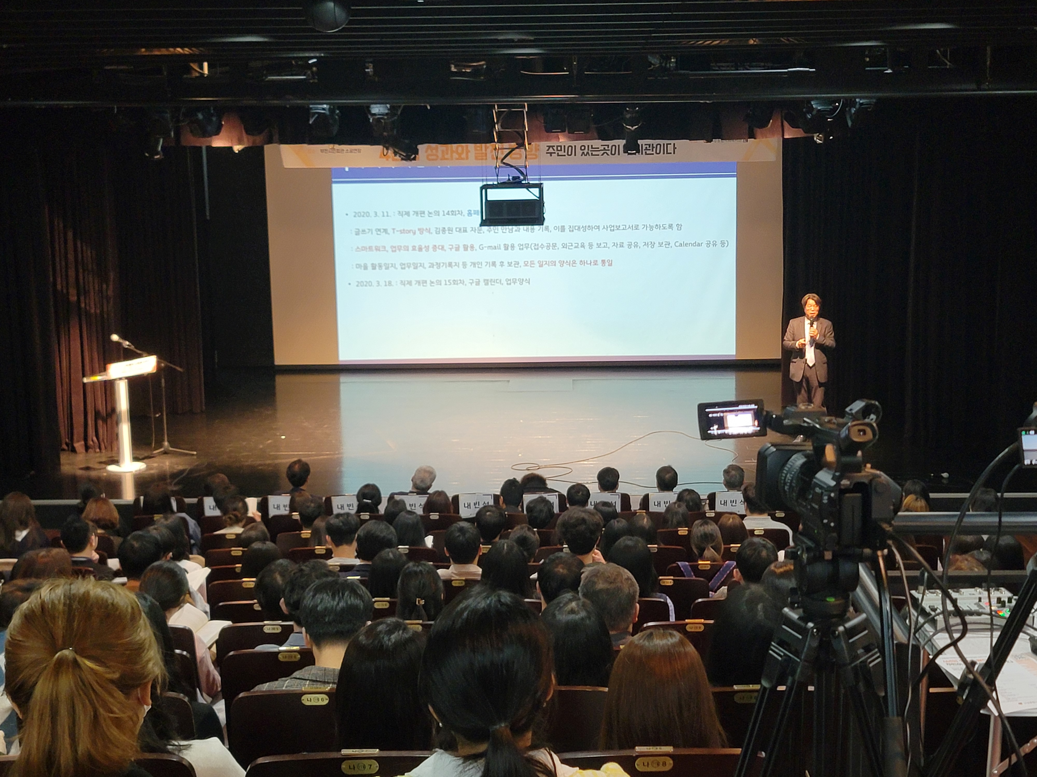 관장님의 준비 실천 과정과 장기적인 실천 방향에 대해 자세하게 설명하는 주제 발표 후