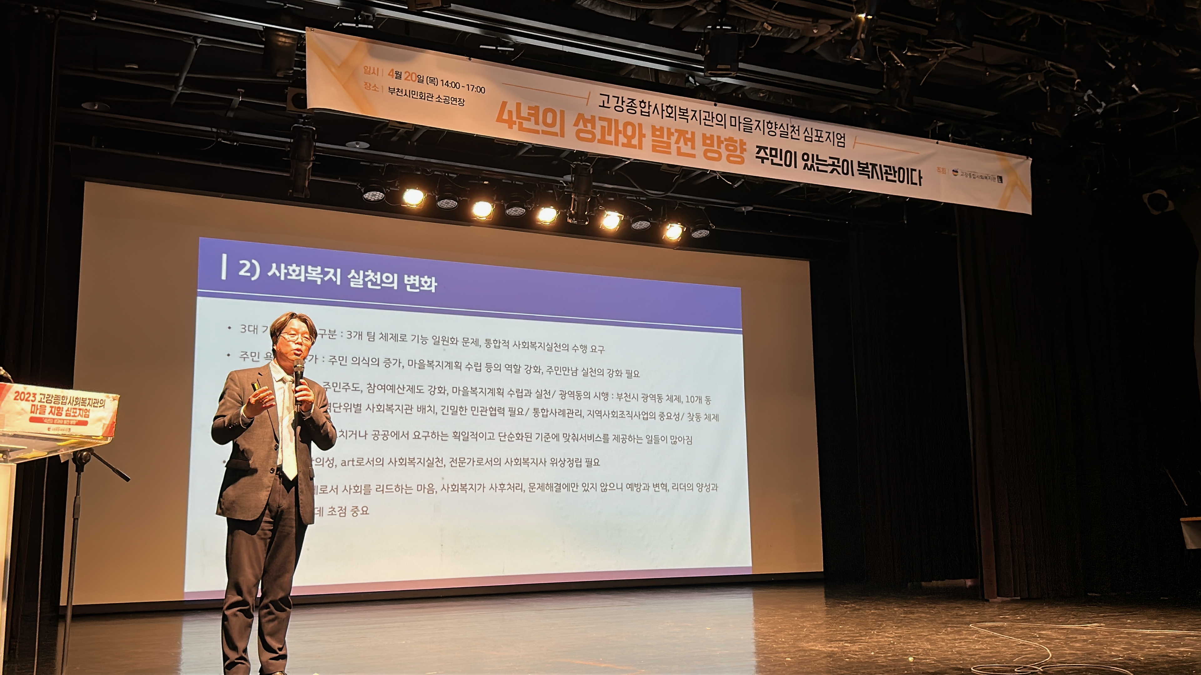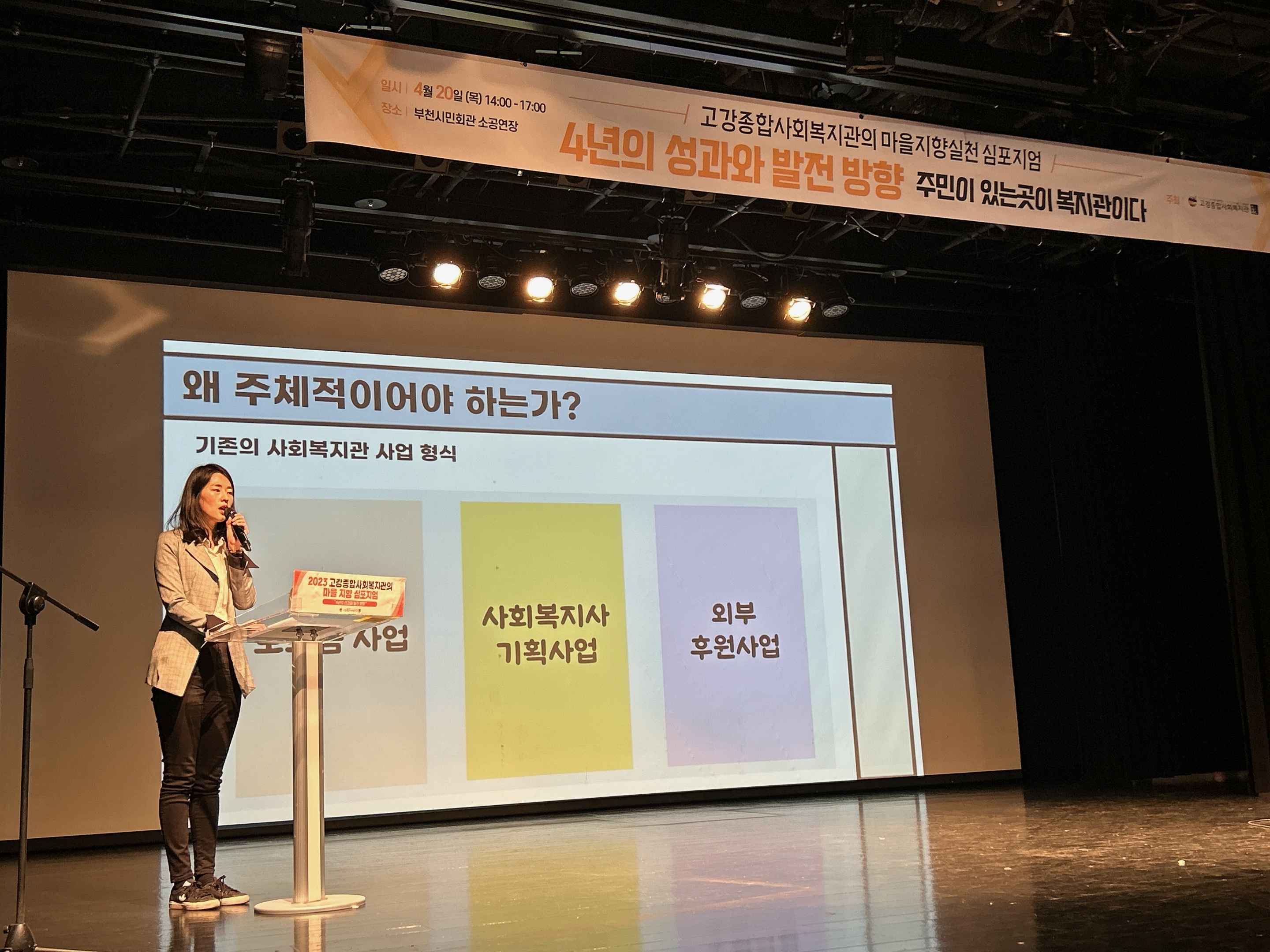 4월 20일(목) 고강종합사회복지관의 마을지향 실천과정과 성과 등을 발표한 심포지엄