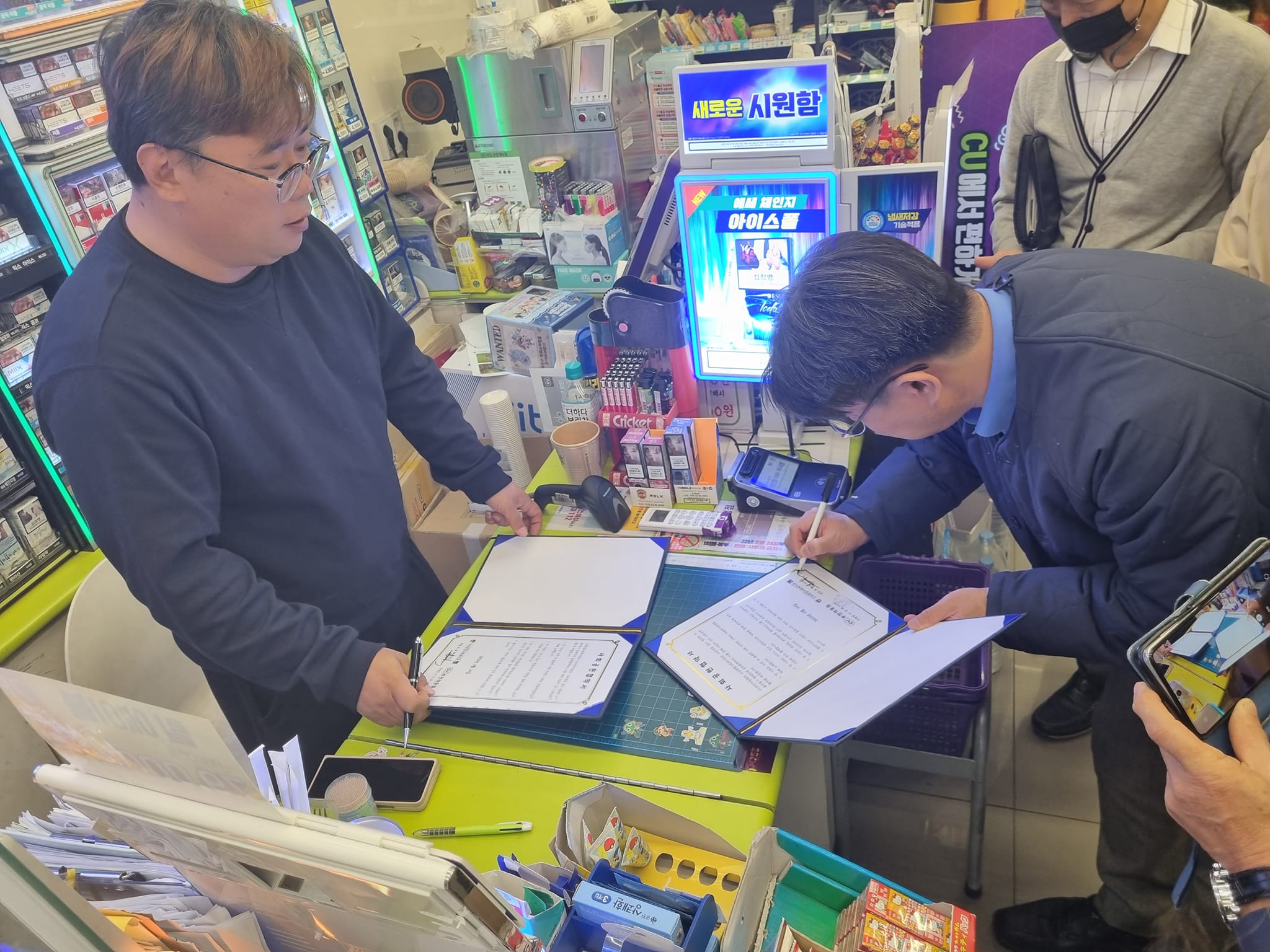 그렇게 협의가 된 세 곳의 편의점과 마트에 방문하여 업무협약을 체결하고