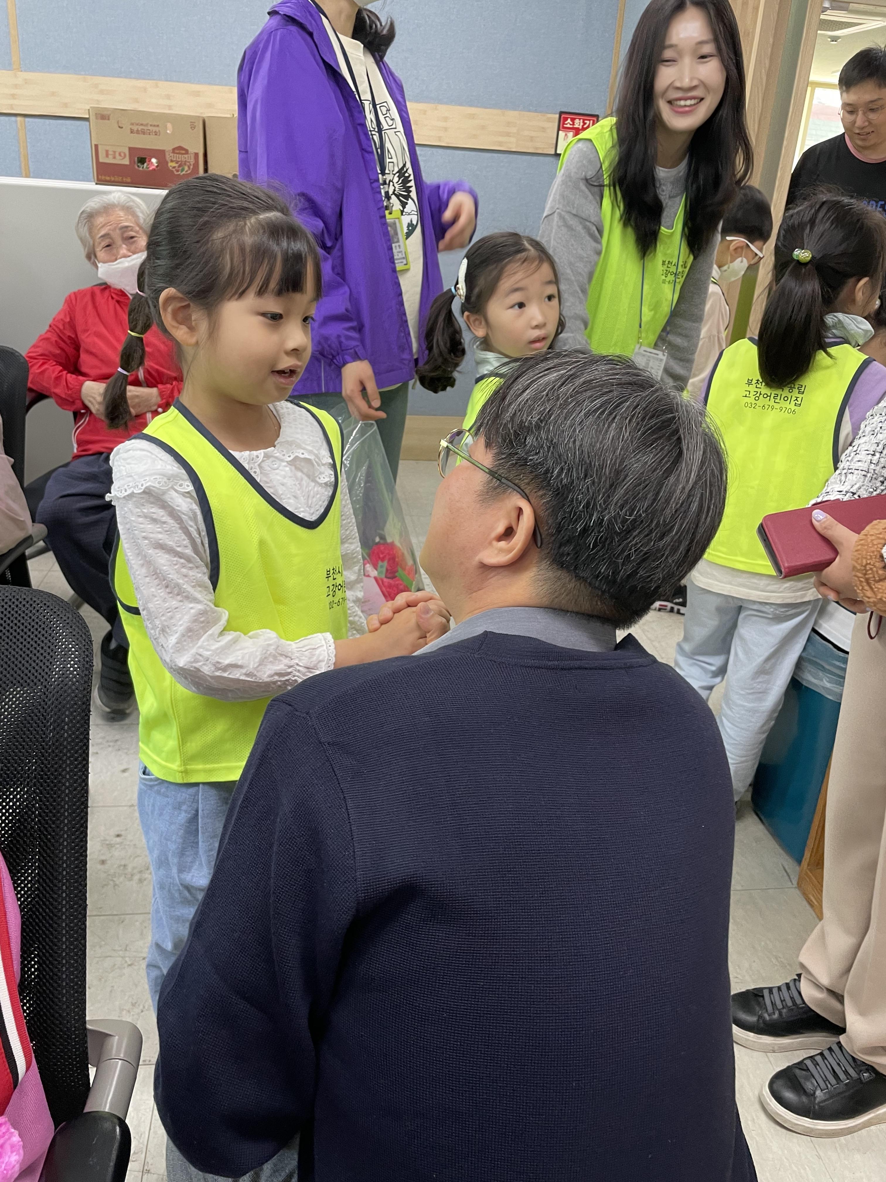 고강어린이집과 늘사랑어린이집에서는 아이들이 와서 직접 카네이션을 달아드리기도 하고 노래를 불러드리기도 했습니다. 식당을 이용하시는 어르신뿐 아니라 봉사자 선생님께도 달아드렸습니다.