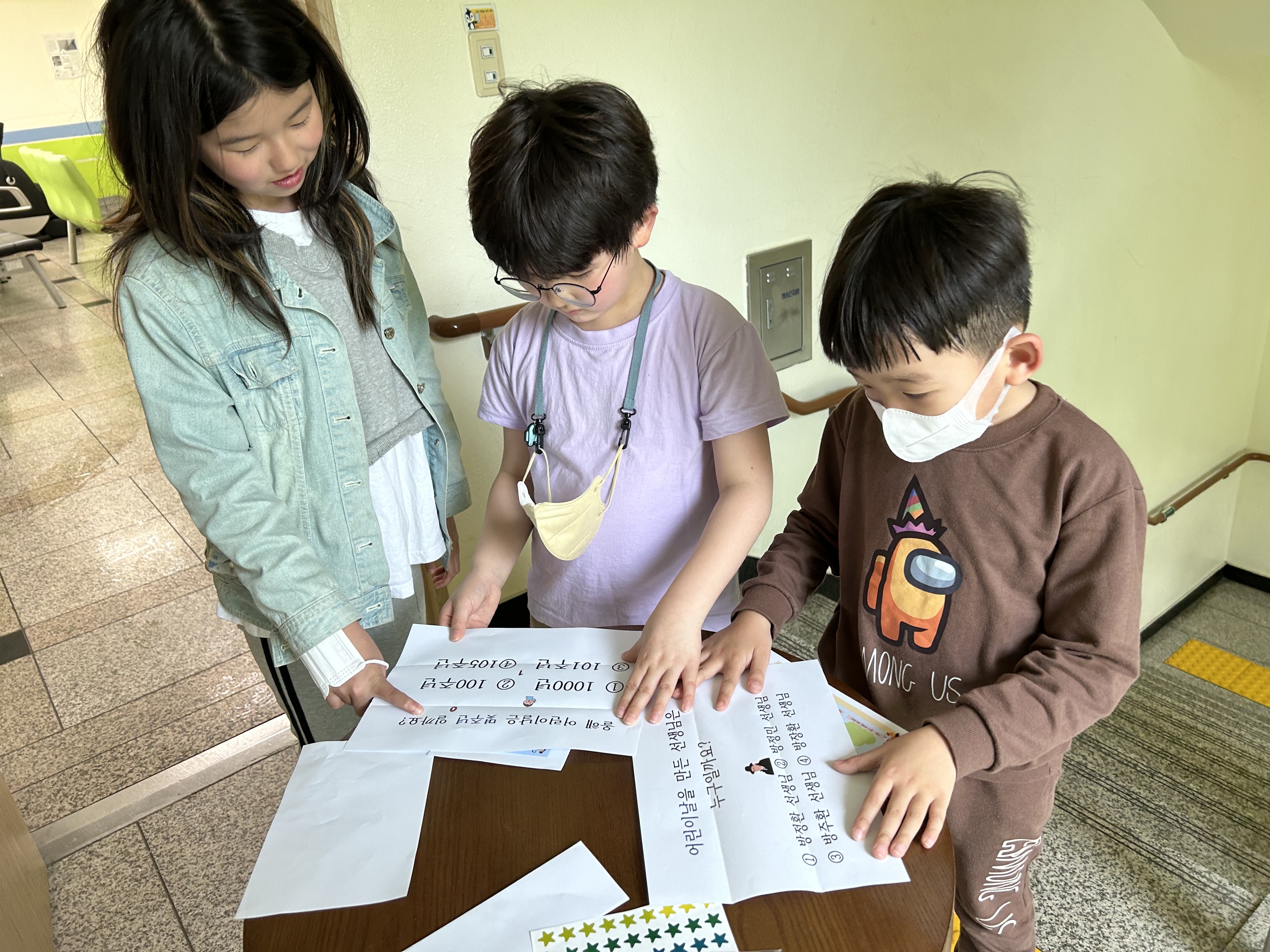 계단에서는 어린이 날과 관련된 퀴즈를 풀었습니다.