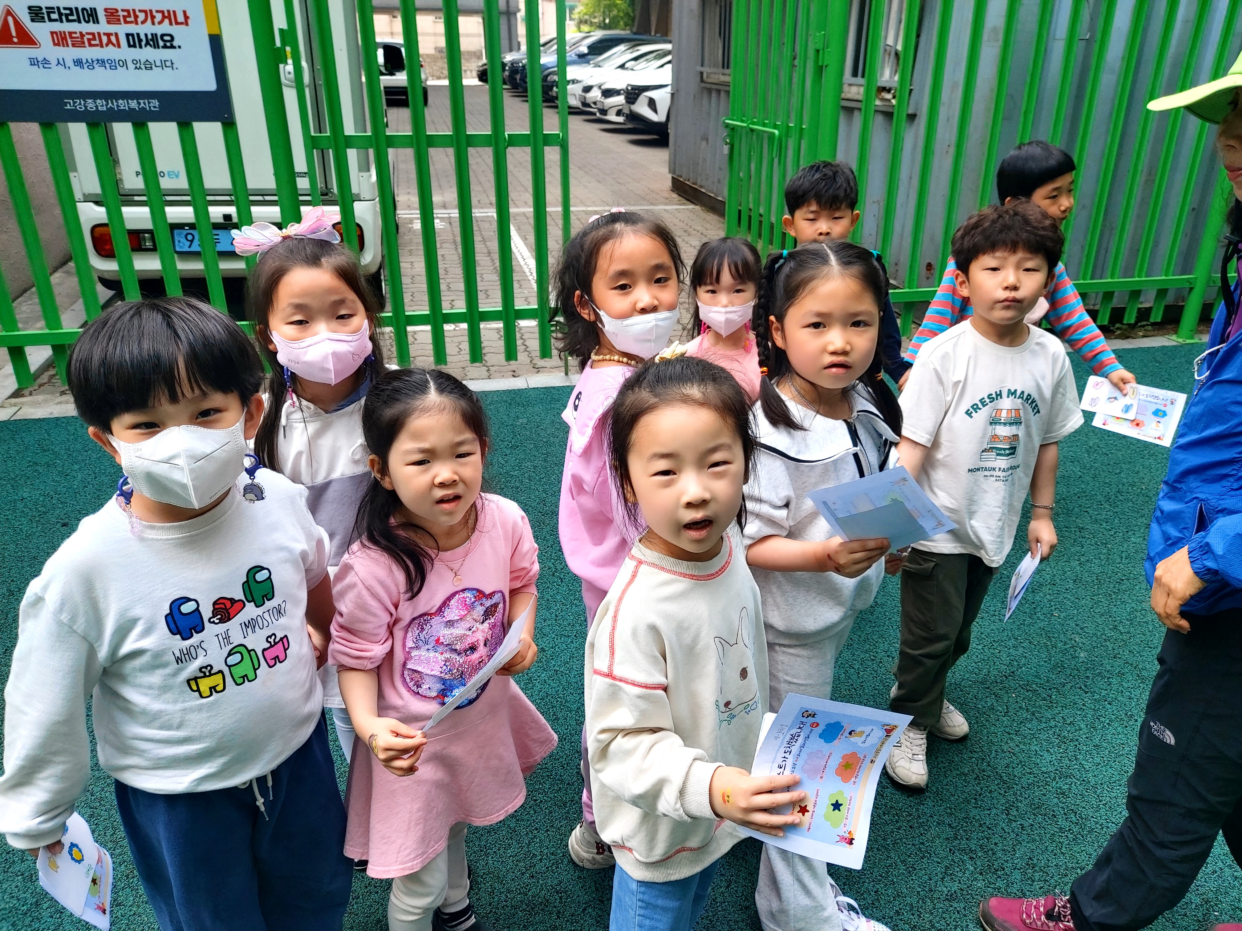 비예보 때문에 복지관 건물에서 진행된 가정의 달 행사. 5층까지도 가야합니다. 환경을 생각할겸, 친구들이 엘리베이터에 몰려 기다려야하는 시간도 아낄 겸 계단으로 올라갈 수 있도록 했습니다.