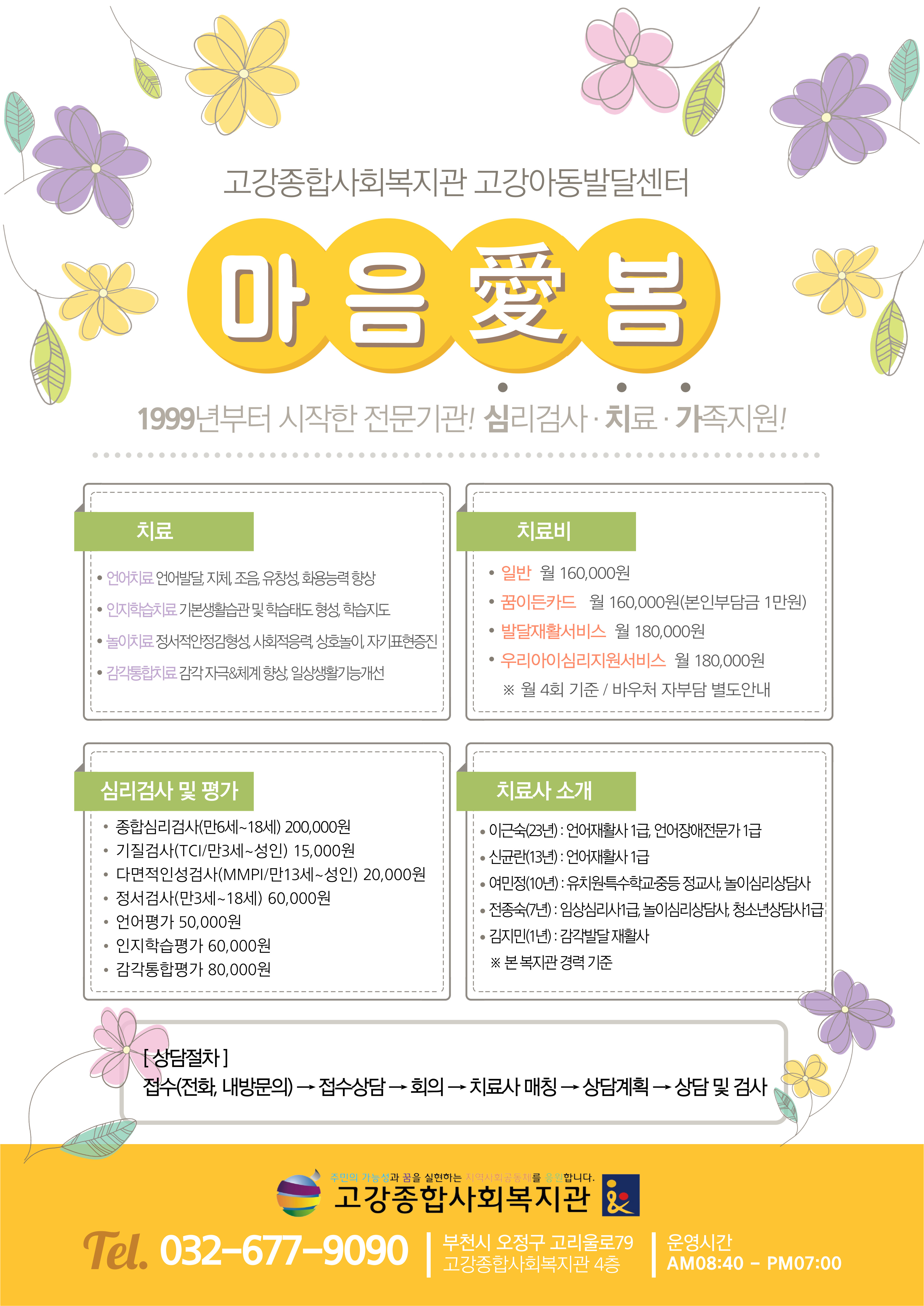 장애 · 비장애 아동의 발달문제를 치료하고, 가족의 기능을 향상시키고자 합니다.