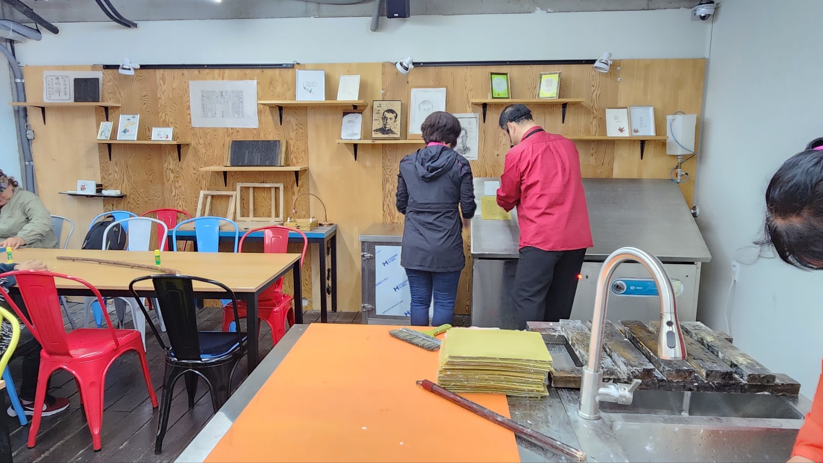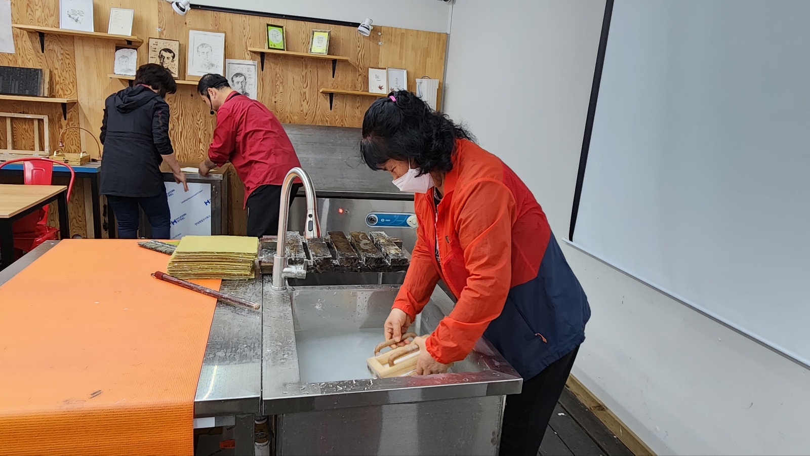 그리고 그동안 우리가 만든 잘 마른 한지에 인쇄 체험을 해봤어요.