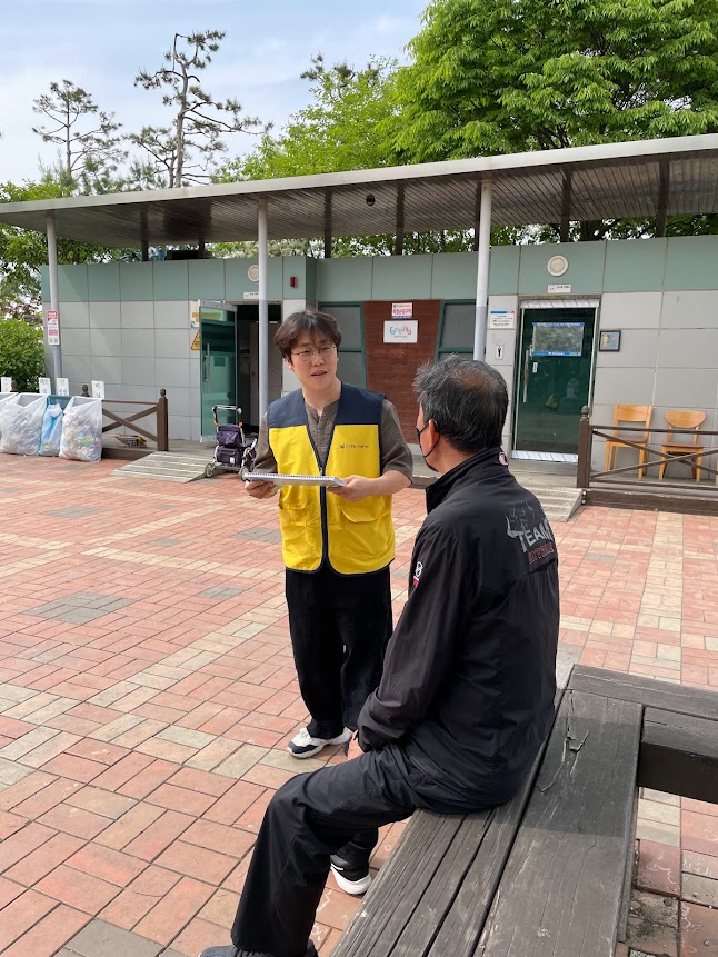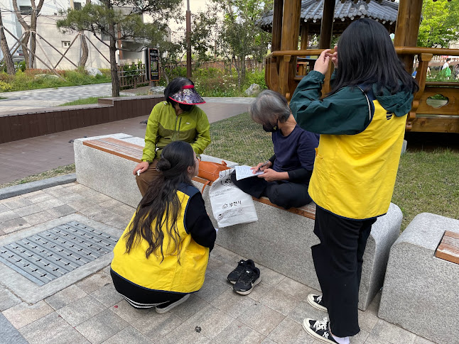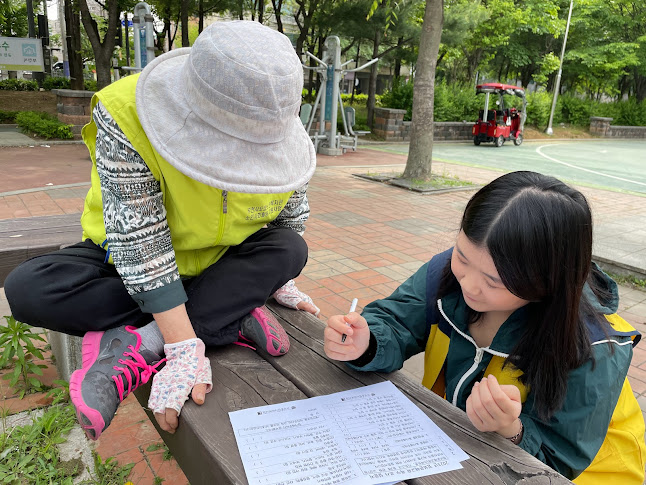 먼저 수주어린이공원으로 향해 벤치에 앉아계신 어르신들께 다가가 인사하고 어디서 나왔으며, 우리가 무엇을 알기 위해, 어떤 도움을 주셨으면 좋겠는지 차근차근 설명드렸습니다.