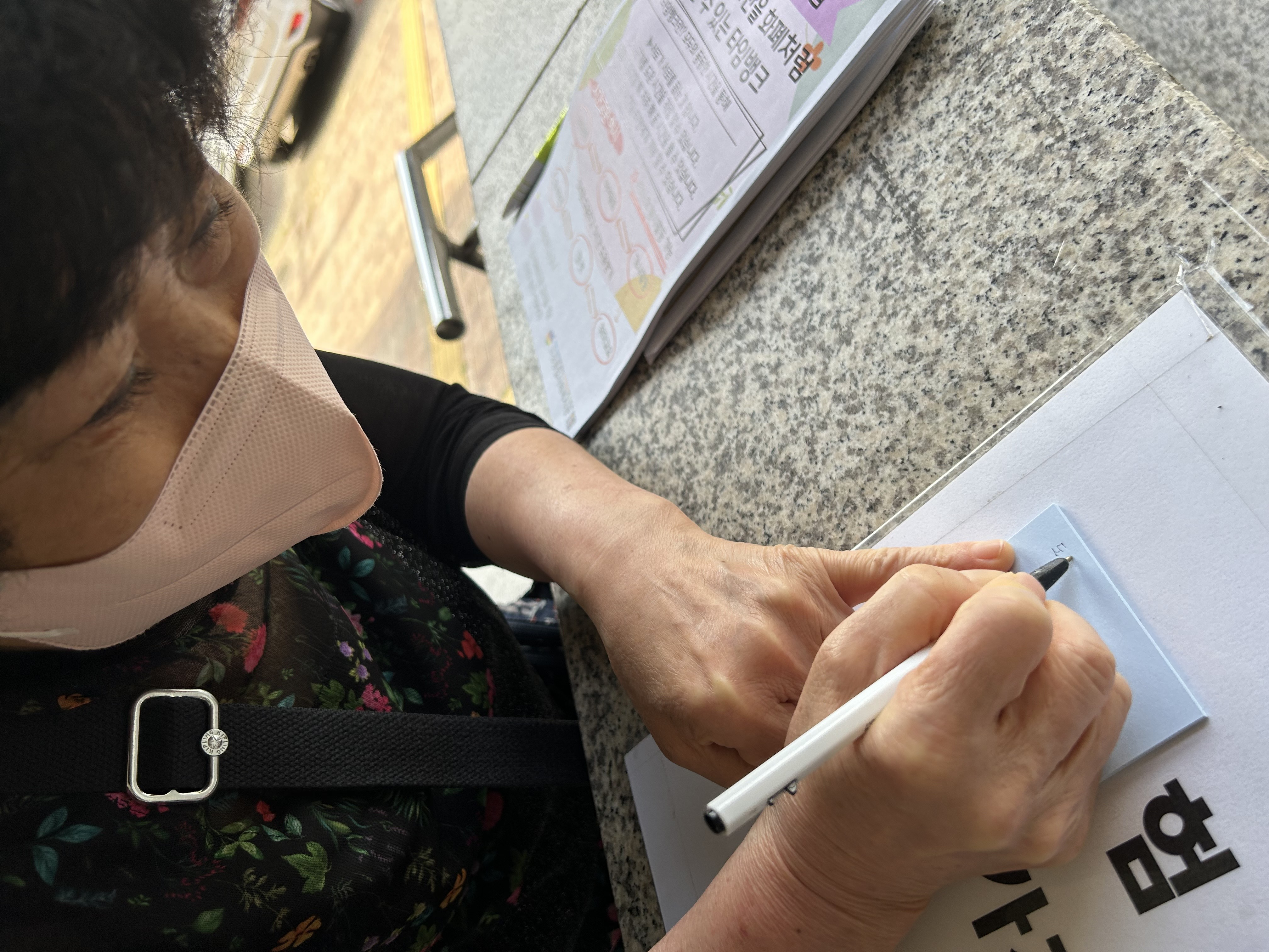 타임뱅크 활동가이신 박00님과 함께 복지관을 왔다갔다 하시는 지역주민분들에게 타임크란 '이웃품앗이'같은 활동이라고 쉽게 소개해드리며 받고싶은 도움과 내가 줄 수 있는 도움이 무엇이 있는지 포스트잇에 적고 이야기 나눴습니다 :)