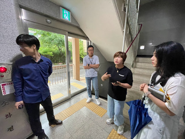 이곳에는 총 11곳의 출입구와 엘리베이터가 있습니다. 얼마나 참여하셨을지 궁금해하며 한 곳, 한 곳 출입문을 열고 들어가 기록지를 확인합니다. 아쉽게도 많은 분들이 참여하지는 안 않습니다. 그래도 소수의 주민 분들이 소중한 소감을 남겨주셨습니다
