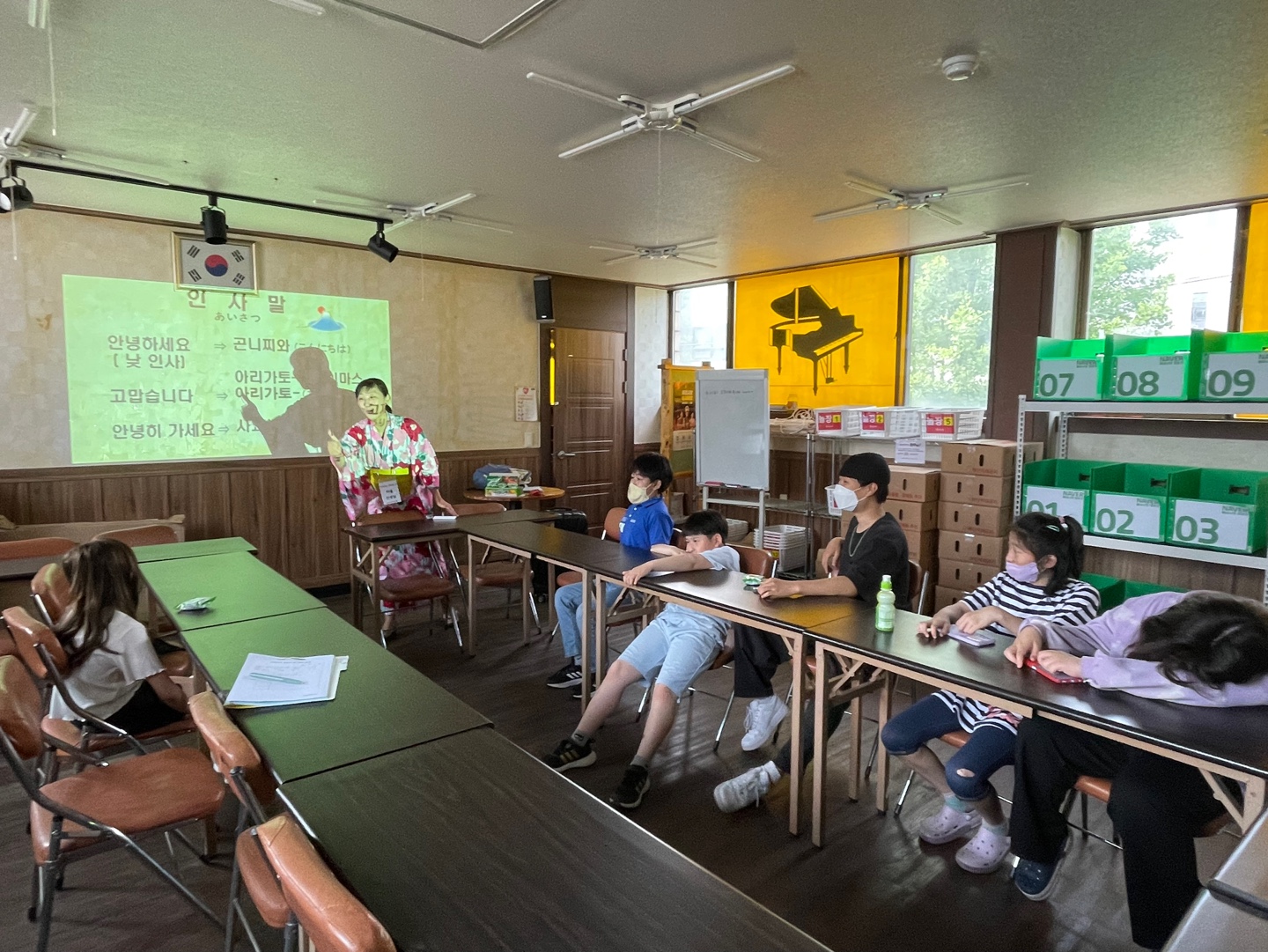 '곤니찌와' 라는 인사말은 아이들 모두 익숙한 듯 내뱉는 모습입니다.