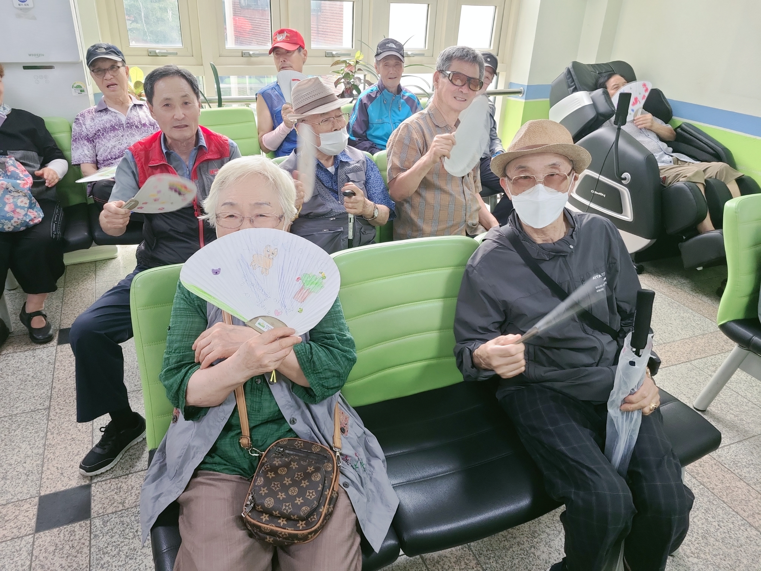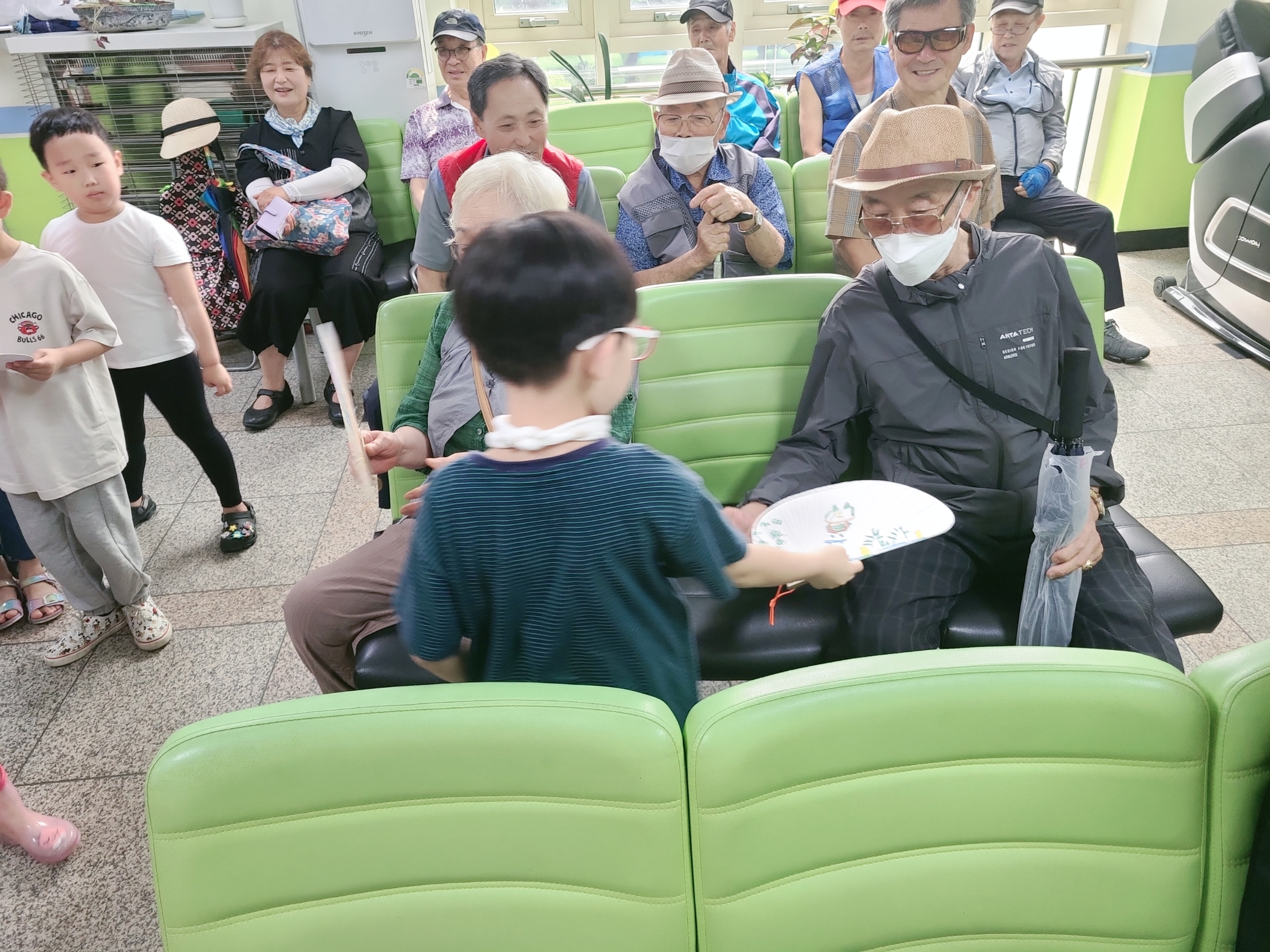 바쁘게 돌아다니며 부채를 나눠드리고 있습니다 😍😍