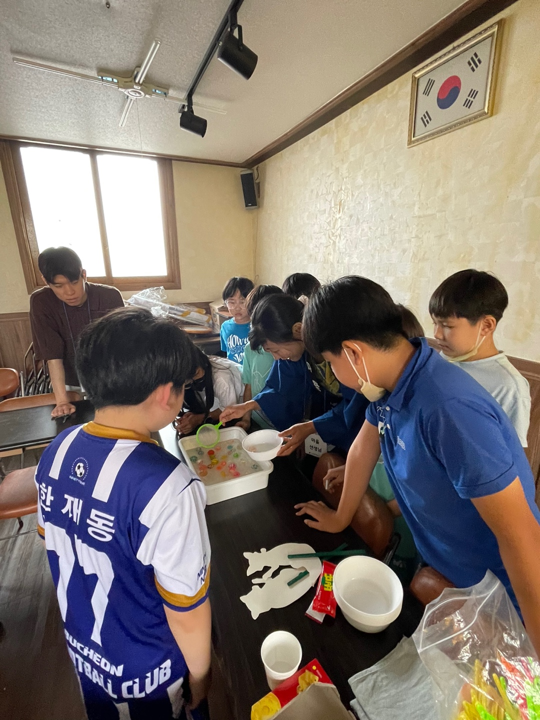 매주 원종동에서는 이주배경 아동과 함께 문화교류 프로그램을 진행 중입니다. 활동 공간을 원종종합시장 상인회실에서 내어주신 덕분에, 햇살이 뜨거워지는 여름에도 쾌적하게 활동할 수 있었습니다.