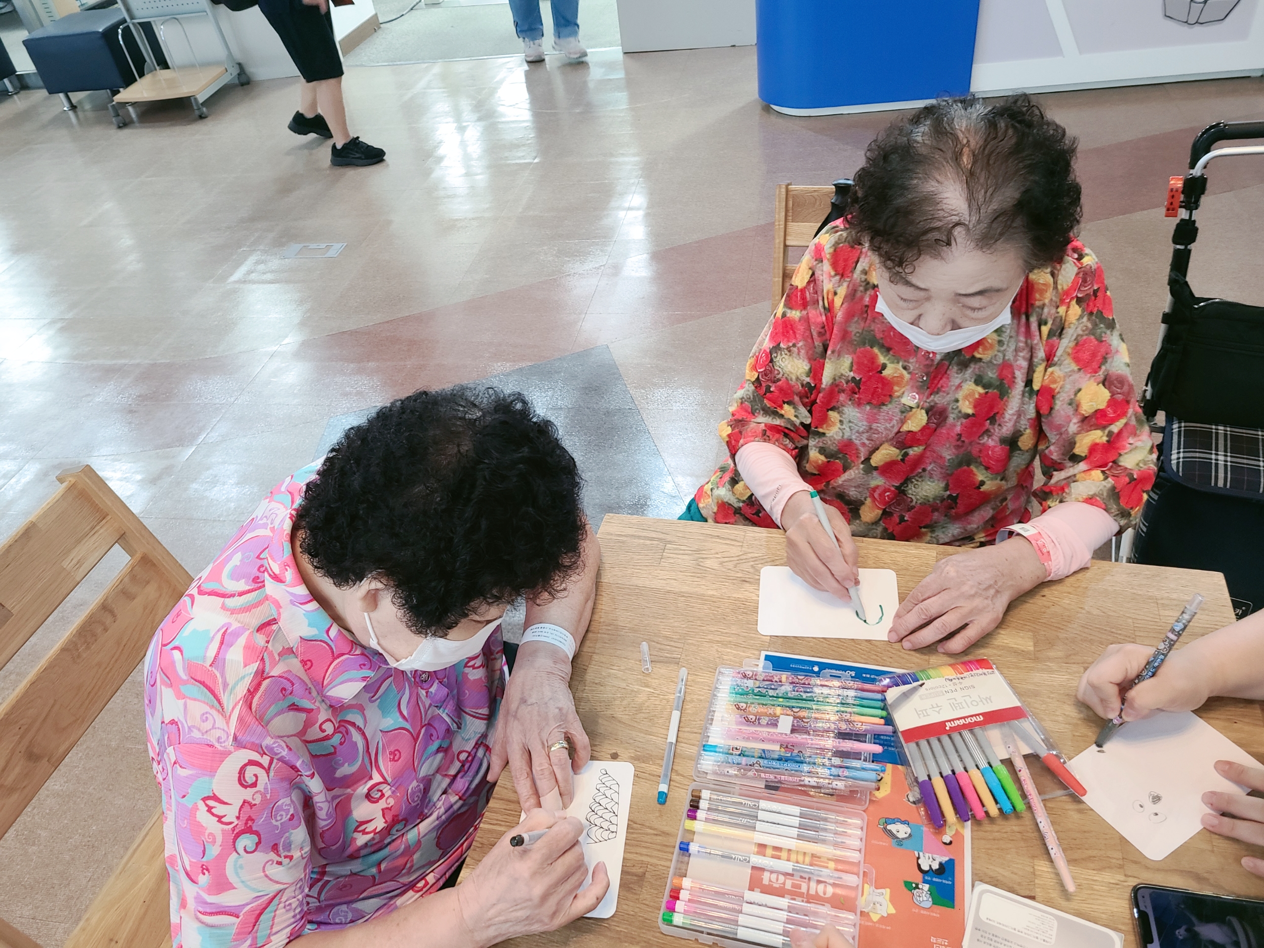 이렇게 알차게 시간을 보내고 마지막으로 한공간에 모여 어르신들과 엽서를 그렸습니다!