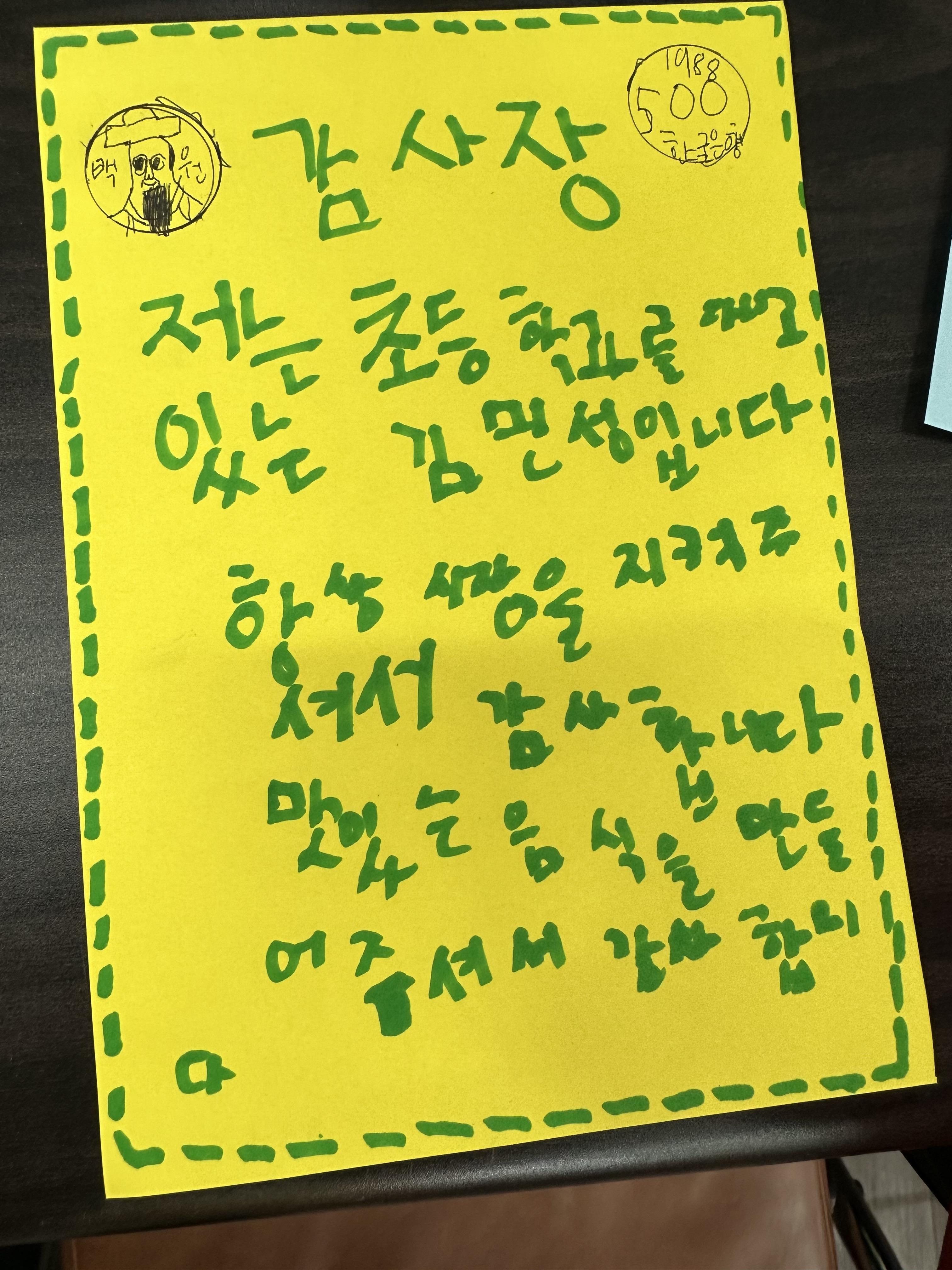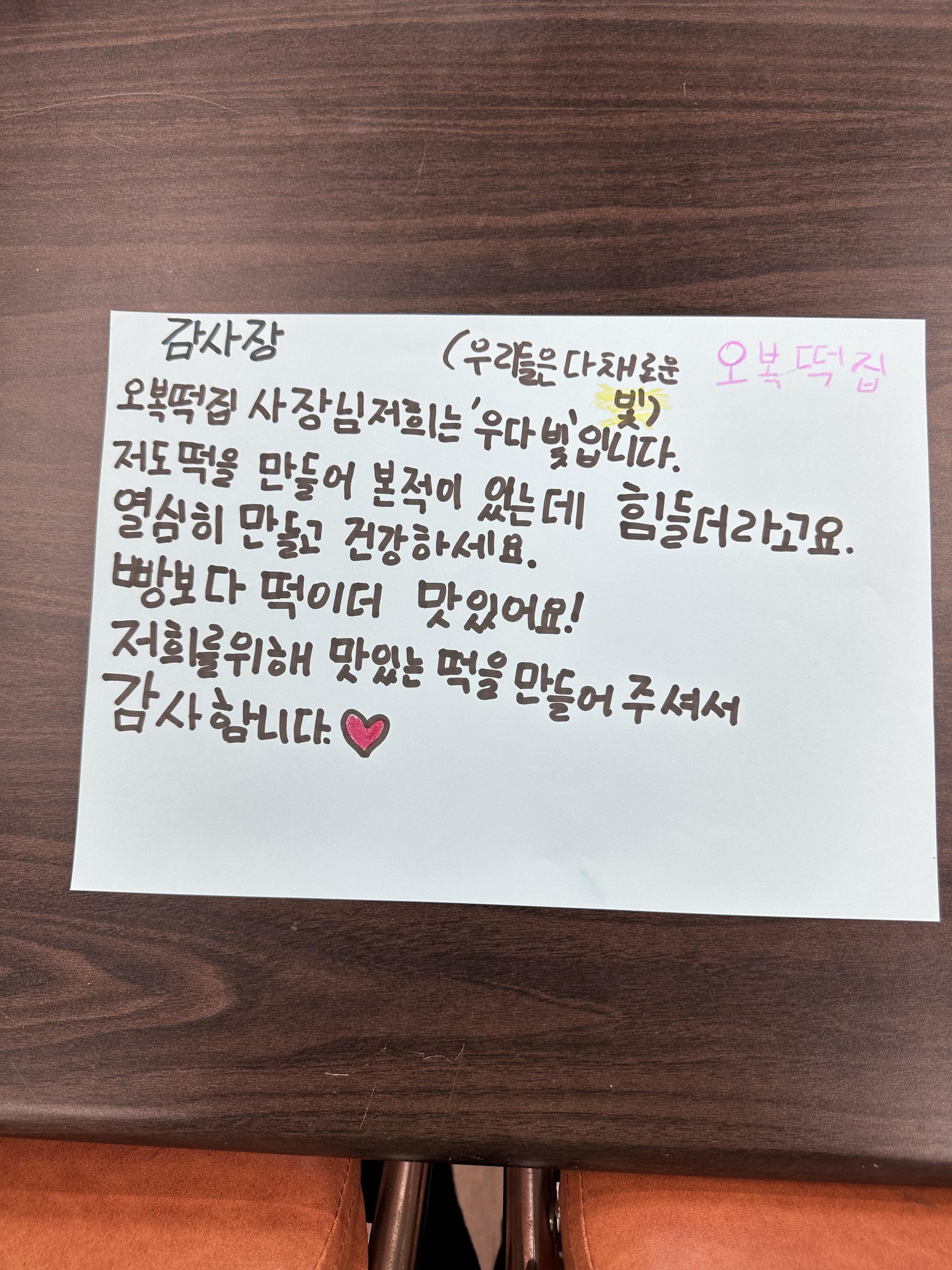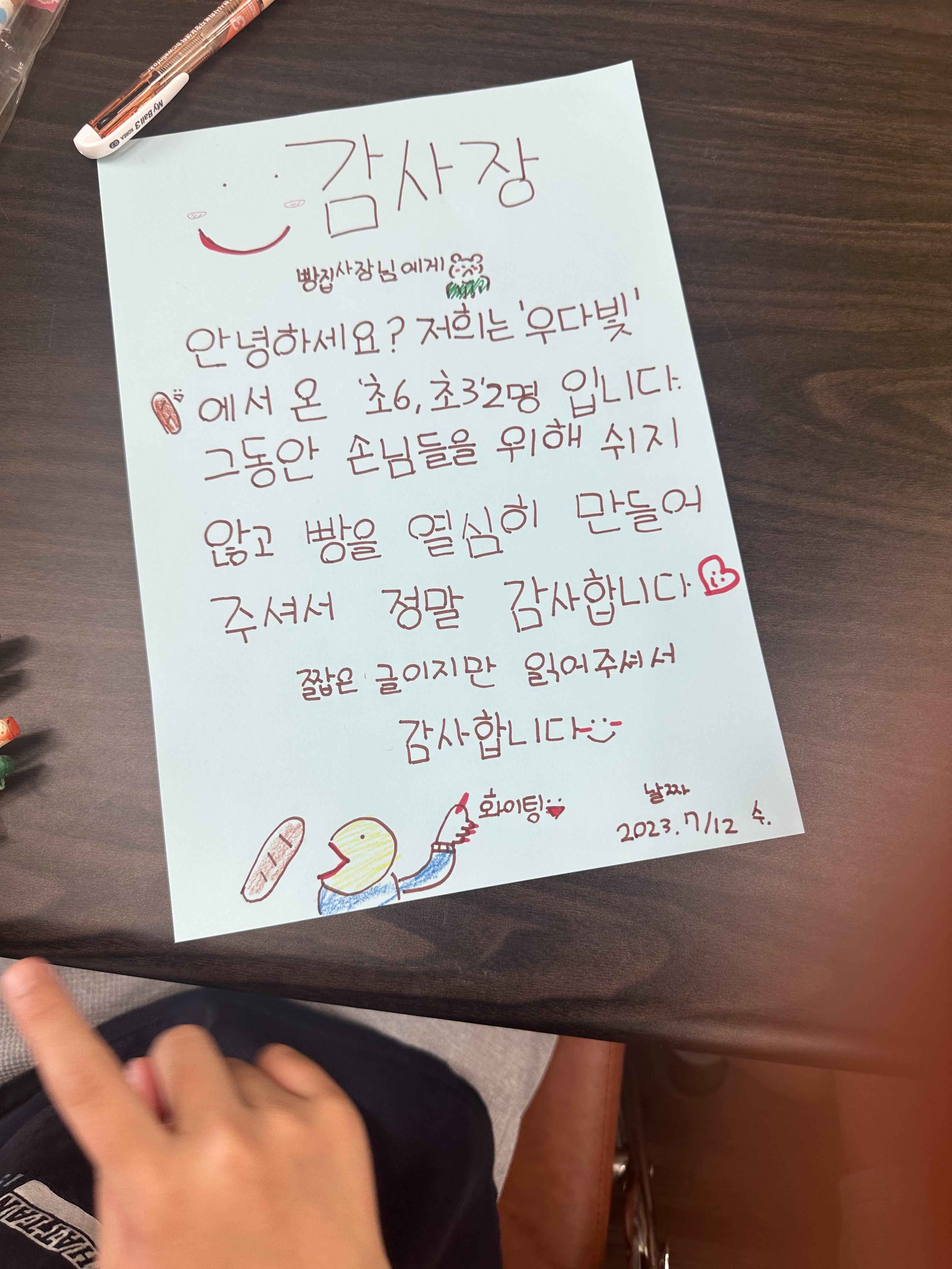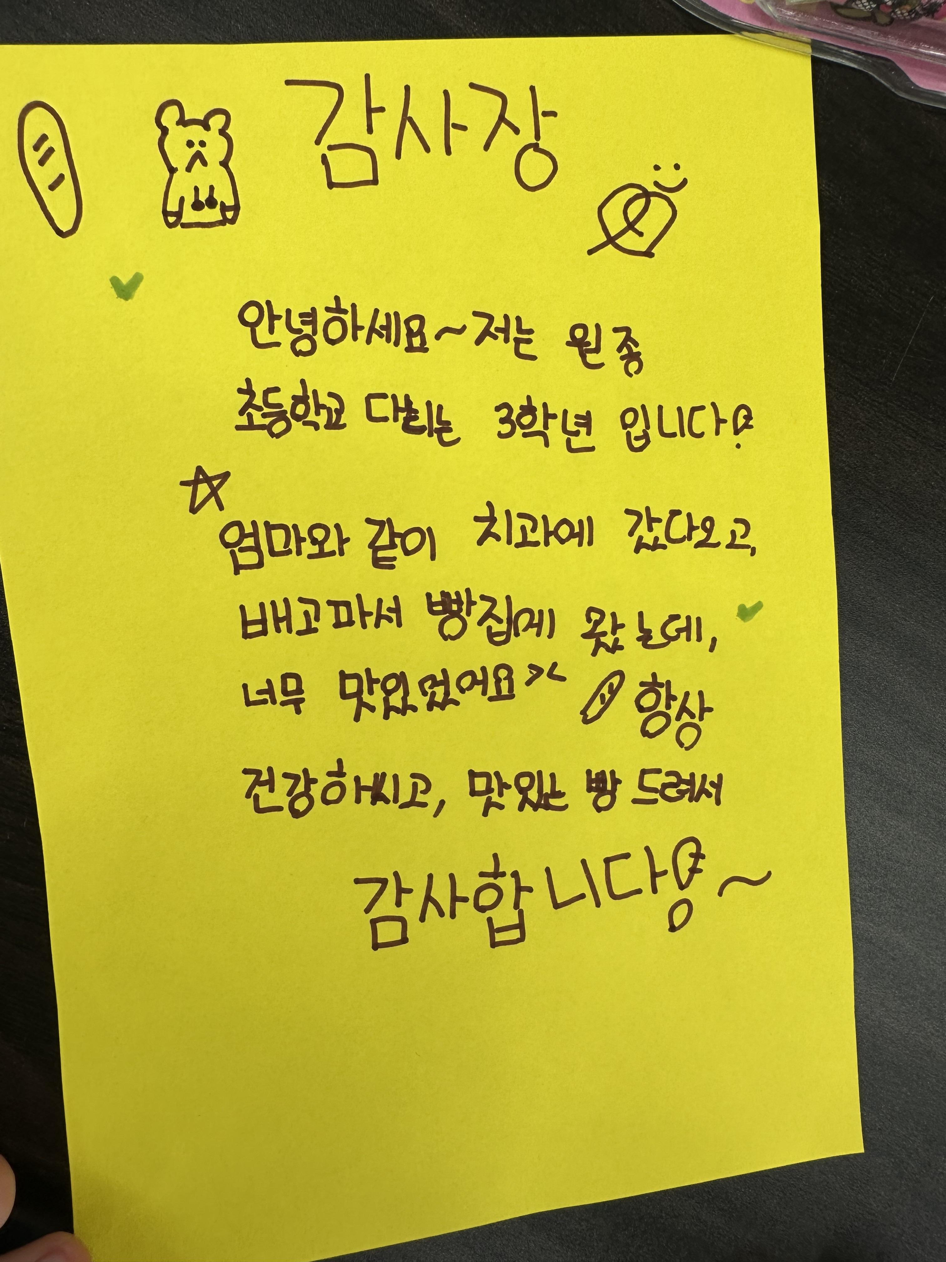 좋아하는 빵을 만들어주시는 빵집 사장님께 감사편지를 전달했습니다.