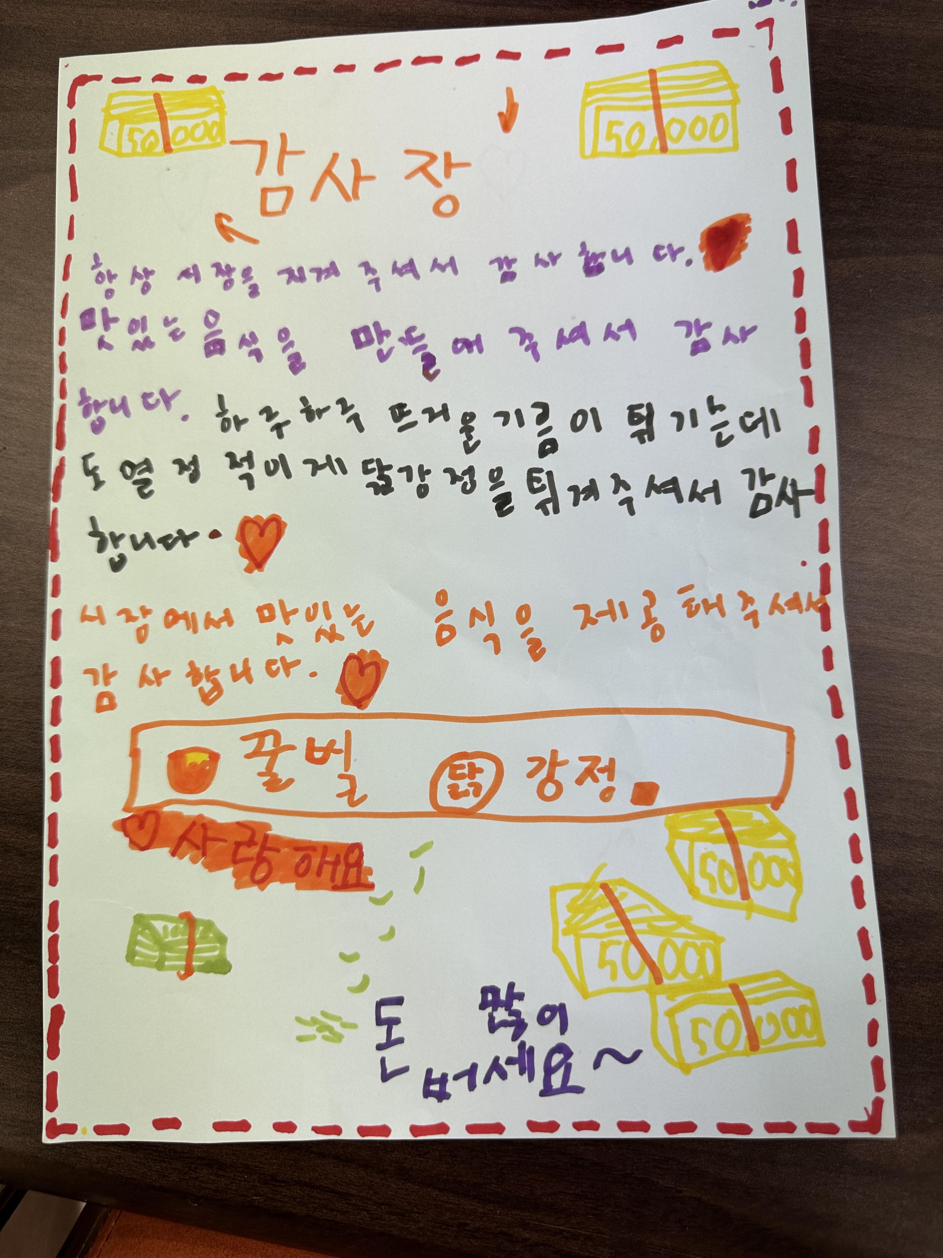 "사장님한테 편지써보는 건 처음인데, 기분 좋아요!"