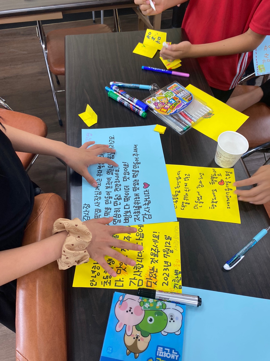 파트너와 함께 4명씩 한 조를 이루어 감사편지를 썼습니다.
