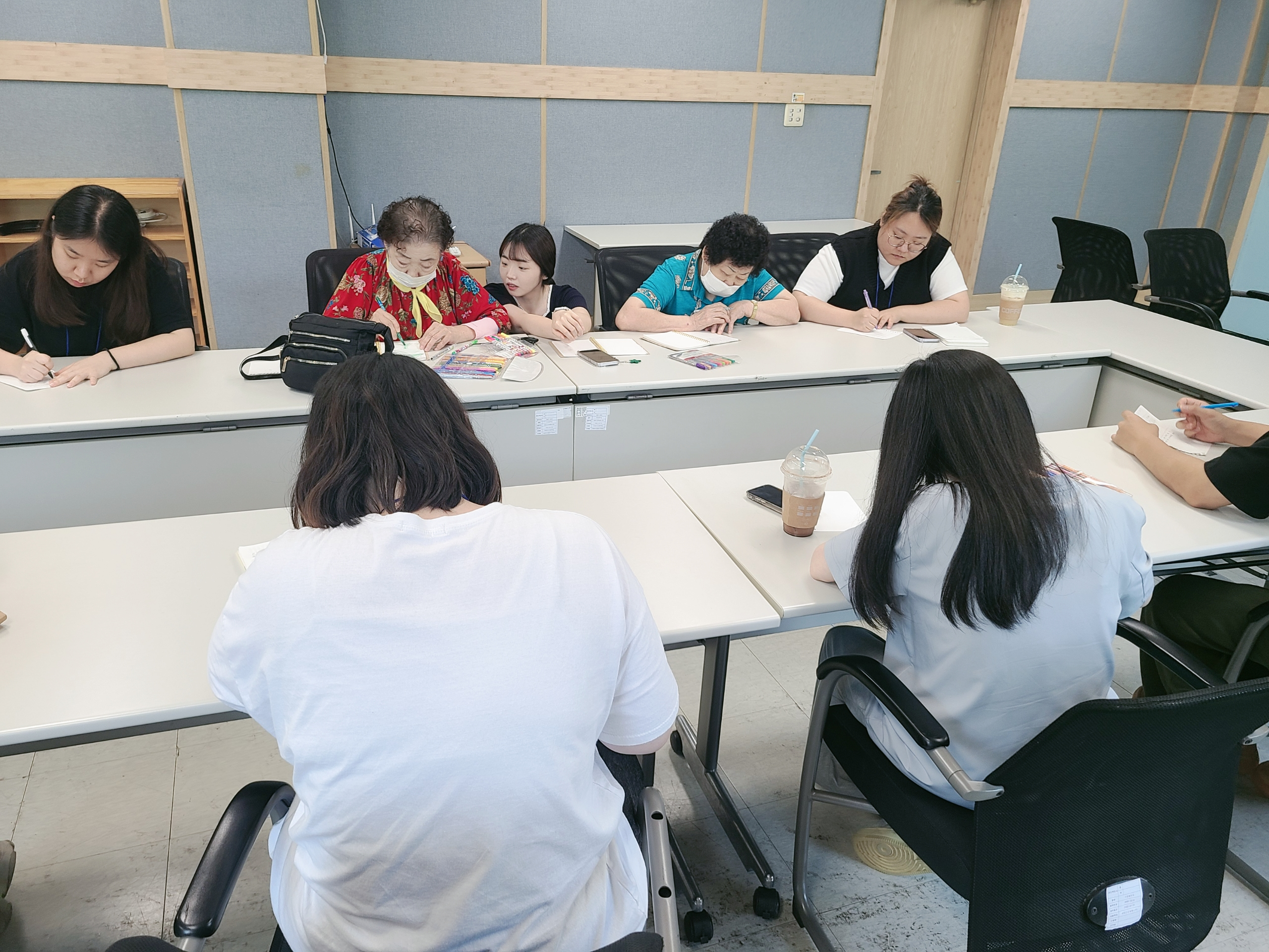 어르신들께서는 "그때 무엇을 봤었었지~? 기억이 가물가물해~" 라고 하시며 색연필을 들고 그림을 그리셨습니다.