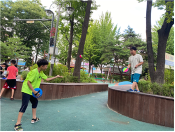 옆에서는 캐치볼로 놀고 있는 모습입니다.