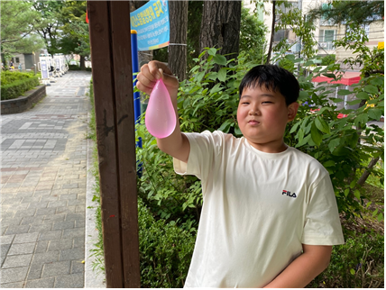 물풍선을 처음 만들어봤다고 자랑하는 모습입니다.