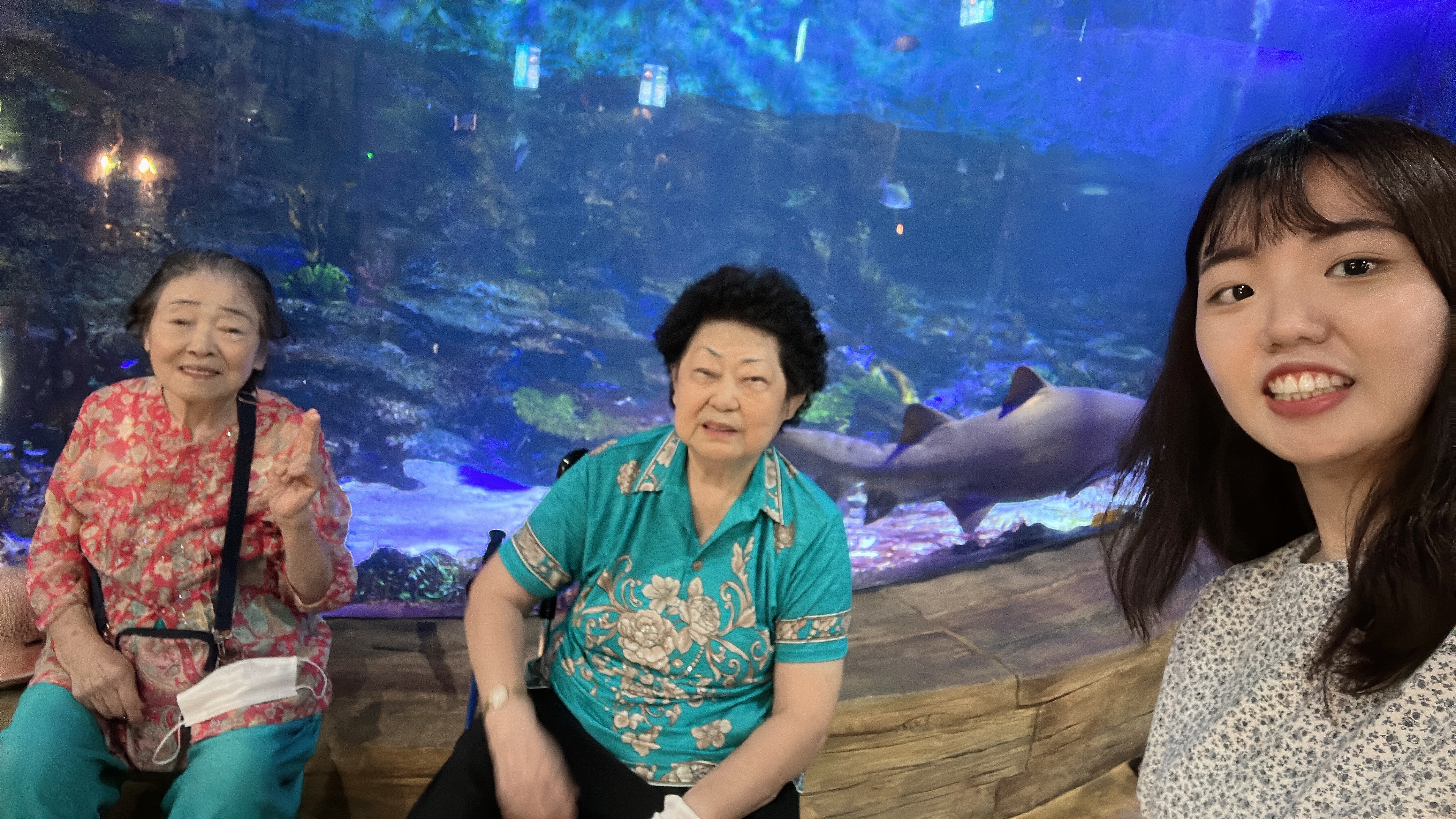 물고기와 상어 앞에서 어르신들과 함께 사진도 찰칵 찍었습니다~