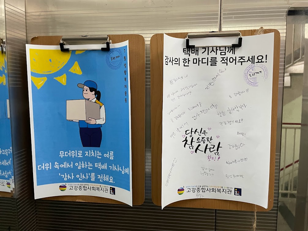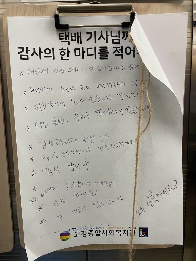 덕분에 주민분들이 택배기사님에 대한 감사한 마음을