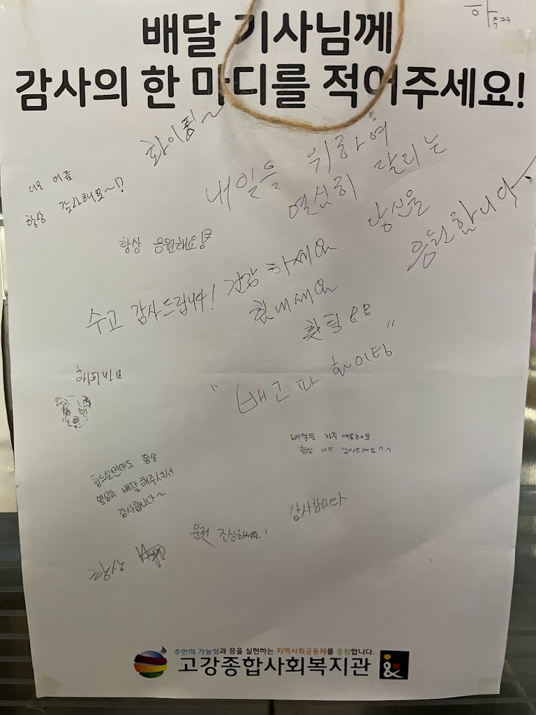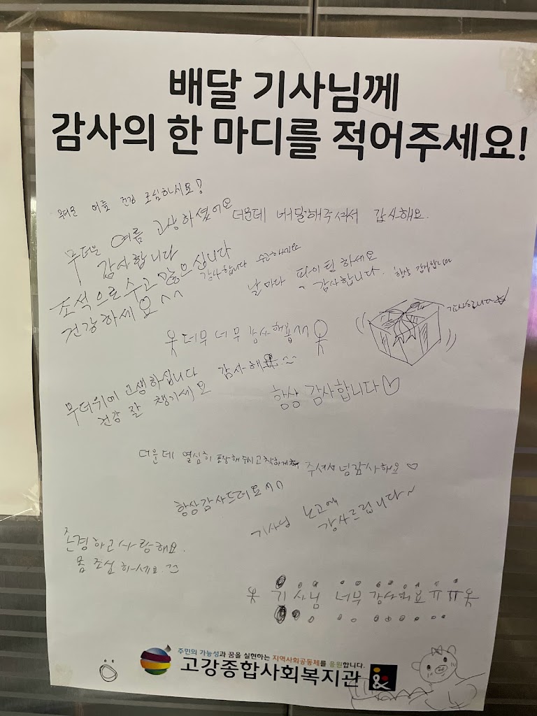 앱을 통한 주문이 늘고, 코로나로 인해 문 밖에 음식을 두고 가는 것이 자연스러워진 요즘 짧은 메시지로나마 이웃이 소통하는 모습을 볼 수 있어 뜻깊습니다.