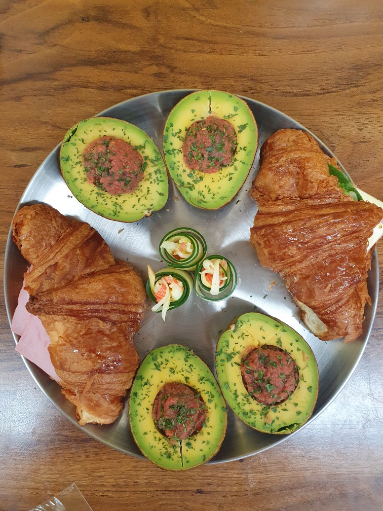 첫날은 홈술레시피(아보카도 명란보트,크루아상 샌드위치,오이롤샐러드,소주하이볼)입니다.