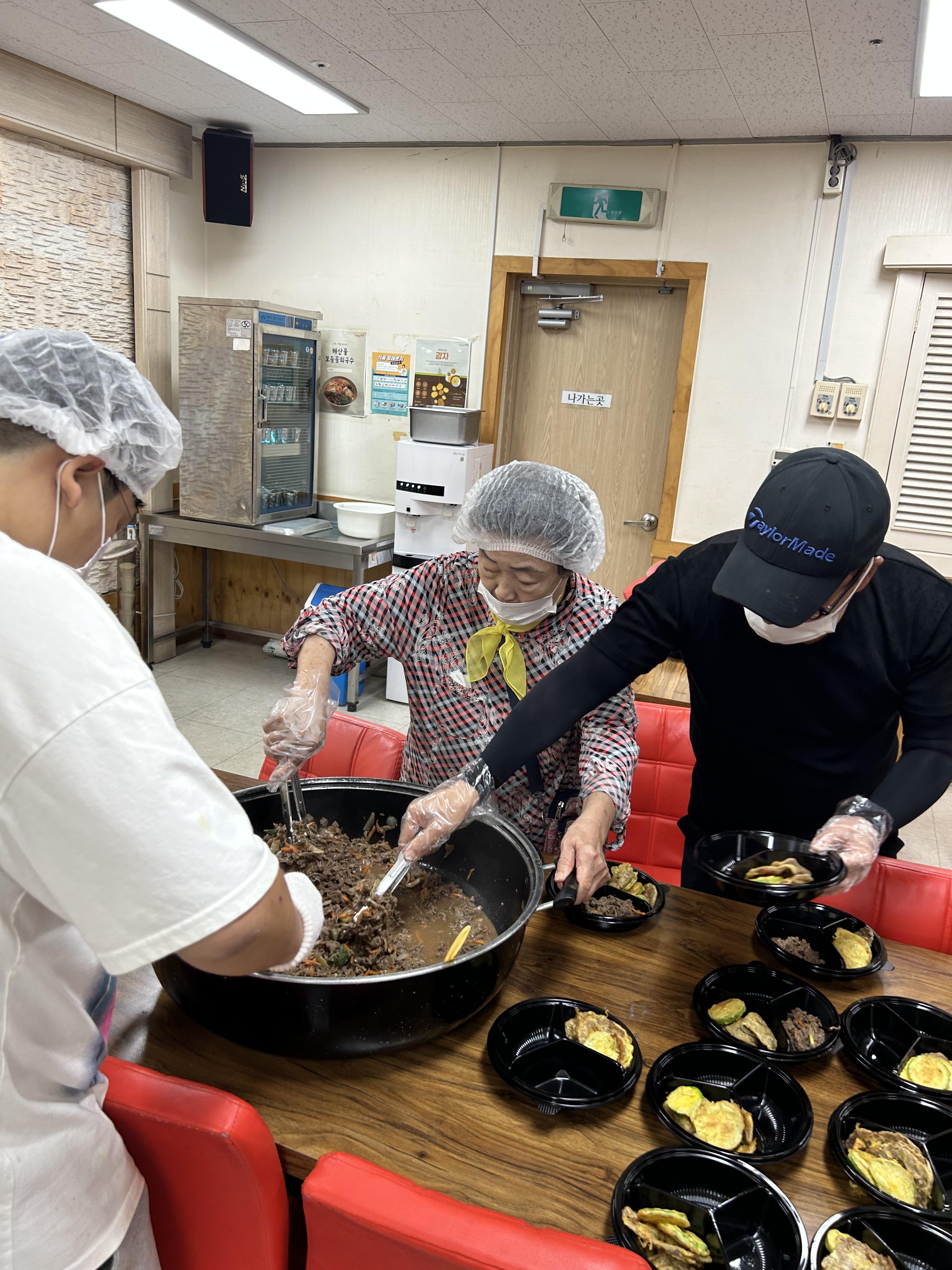 하나 둘 힘을 모으니 먹음직스러운 음식이 완성되었습니다!! 도시락통에 포장하여 직접 어르신들께 배달해드렸습니다^0^