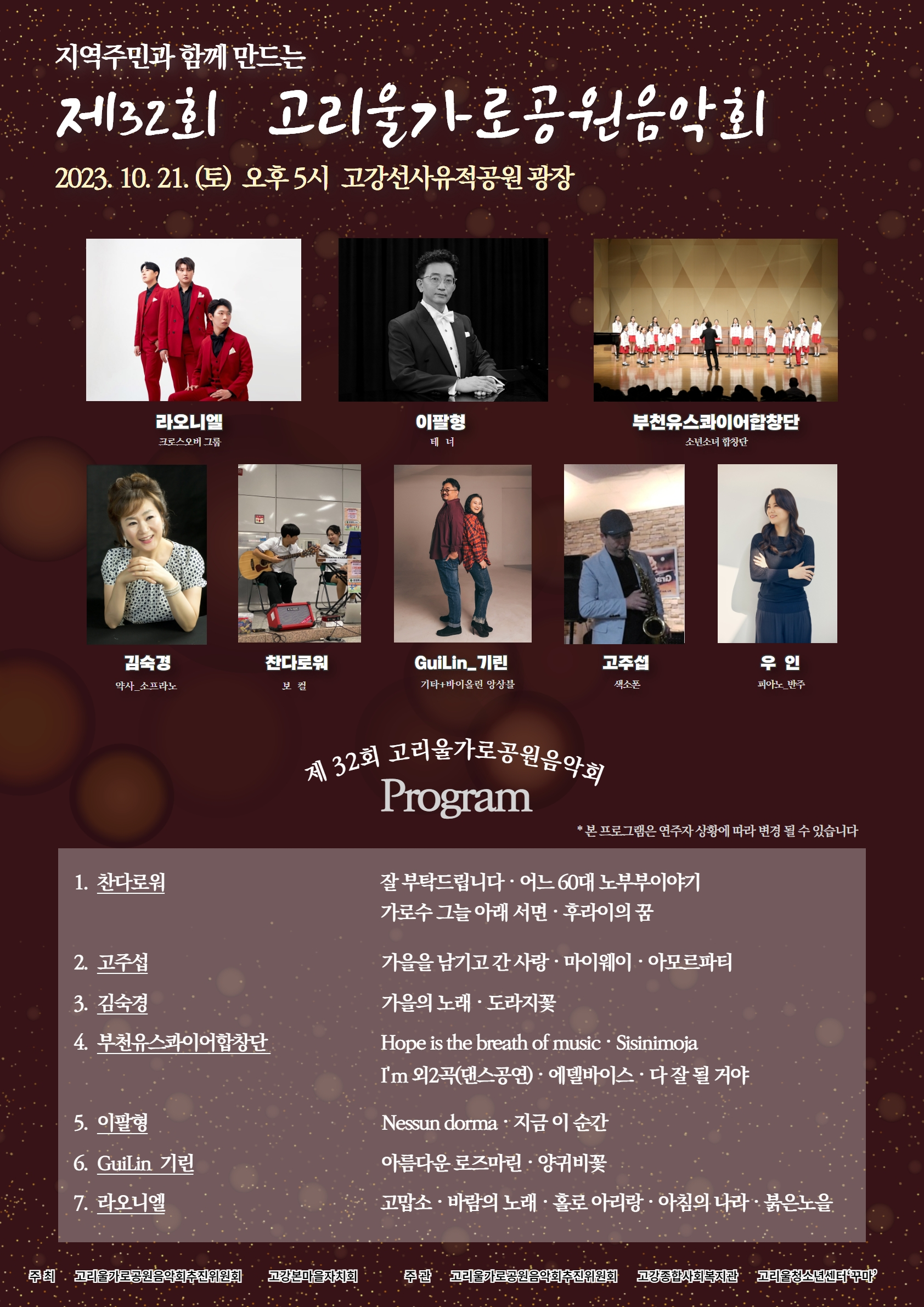 [제32회 고리울가로공원음악회]에 주민 여러분을 초대합니다.