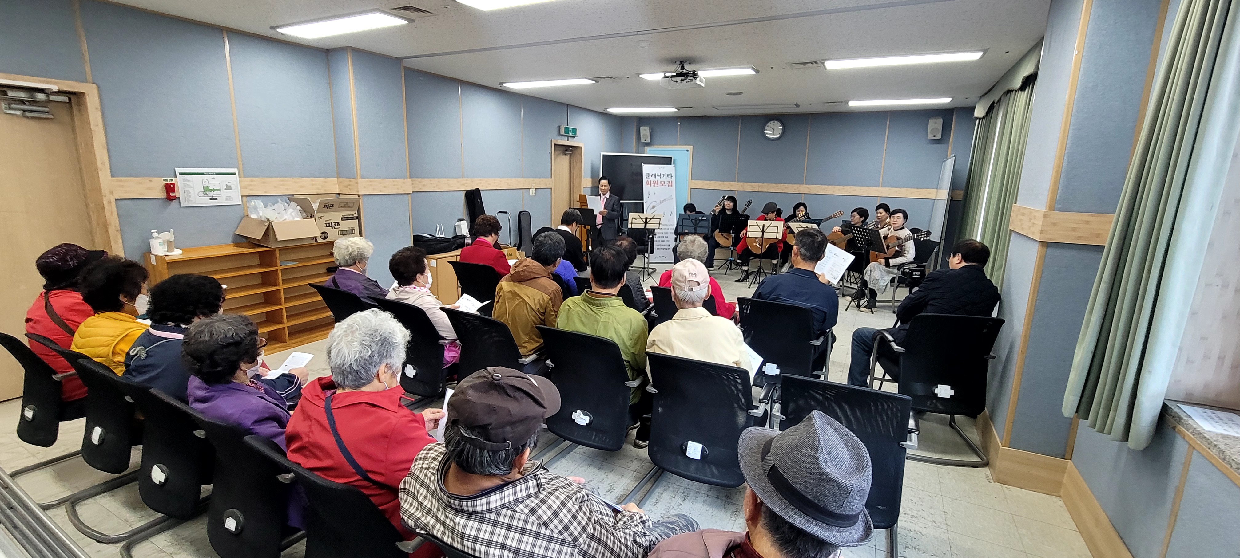 여러 곡들을 연주해주시면서 공연 중반부에는 경로식당 어르신 두 분께서 노래도 부르셨습니다.