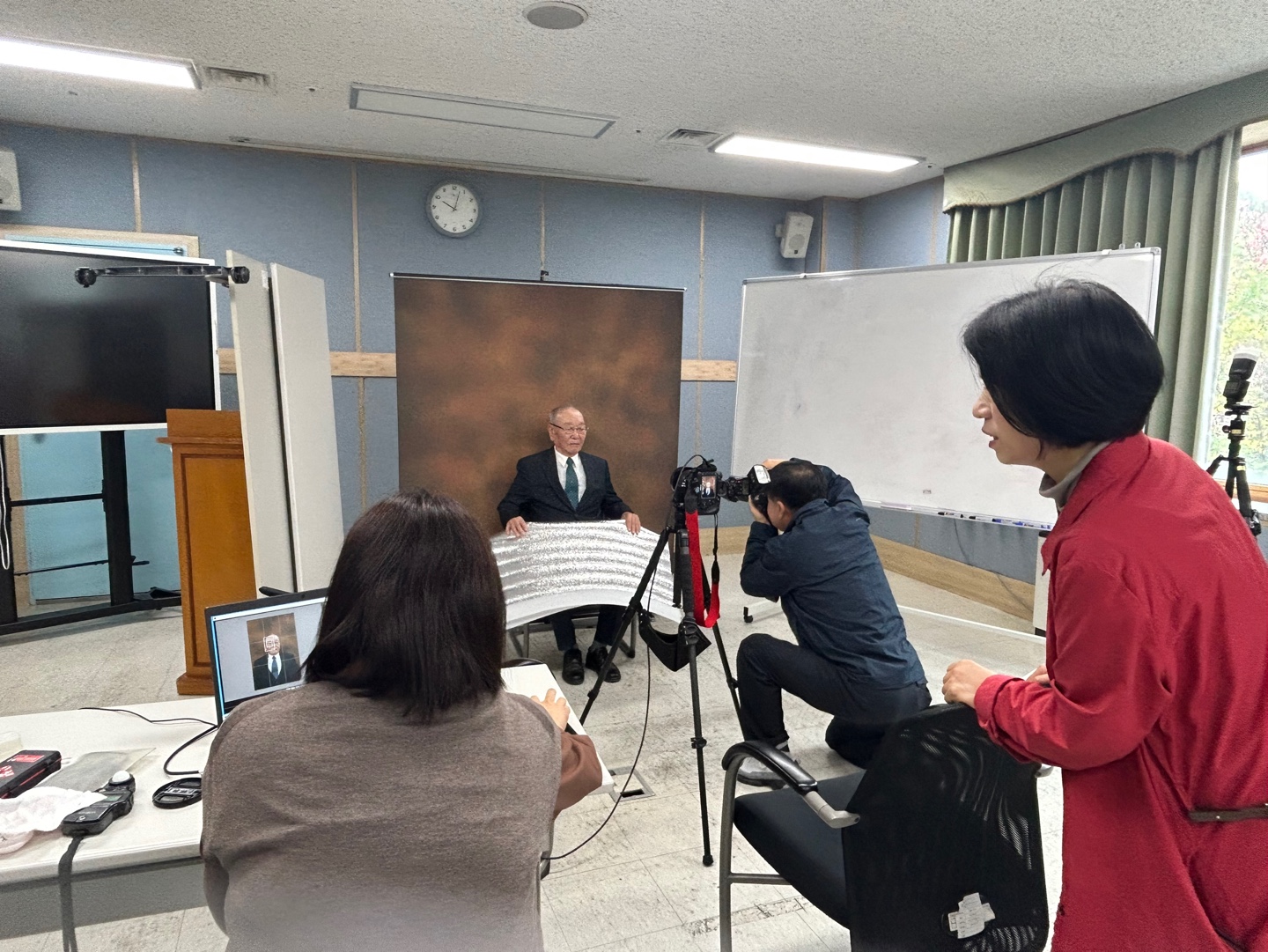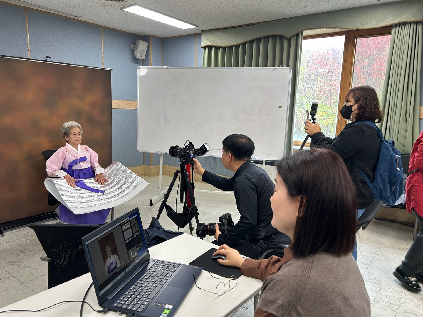 오전 일찍부터 복지관에 찾아와 사진촬영 장소를 세팅하고, 모두가 분주하게 각자의 위치에서 사진찍을 준비를 합니다^^