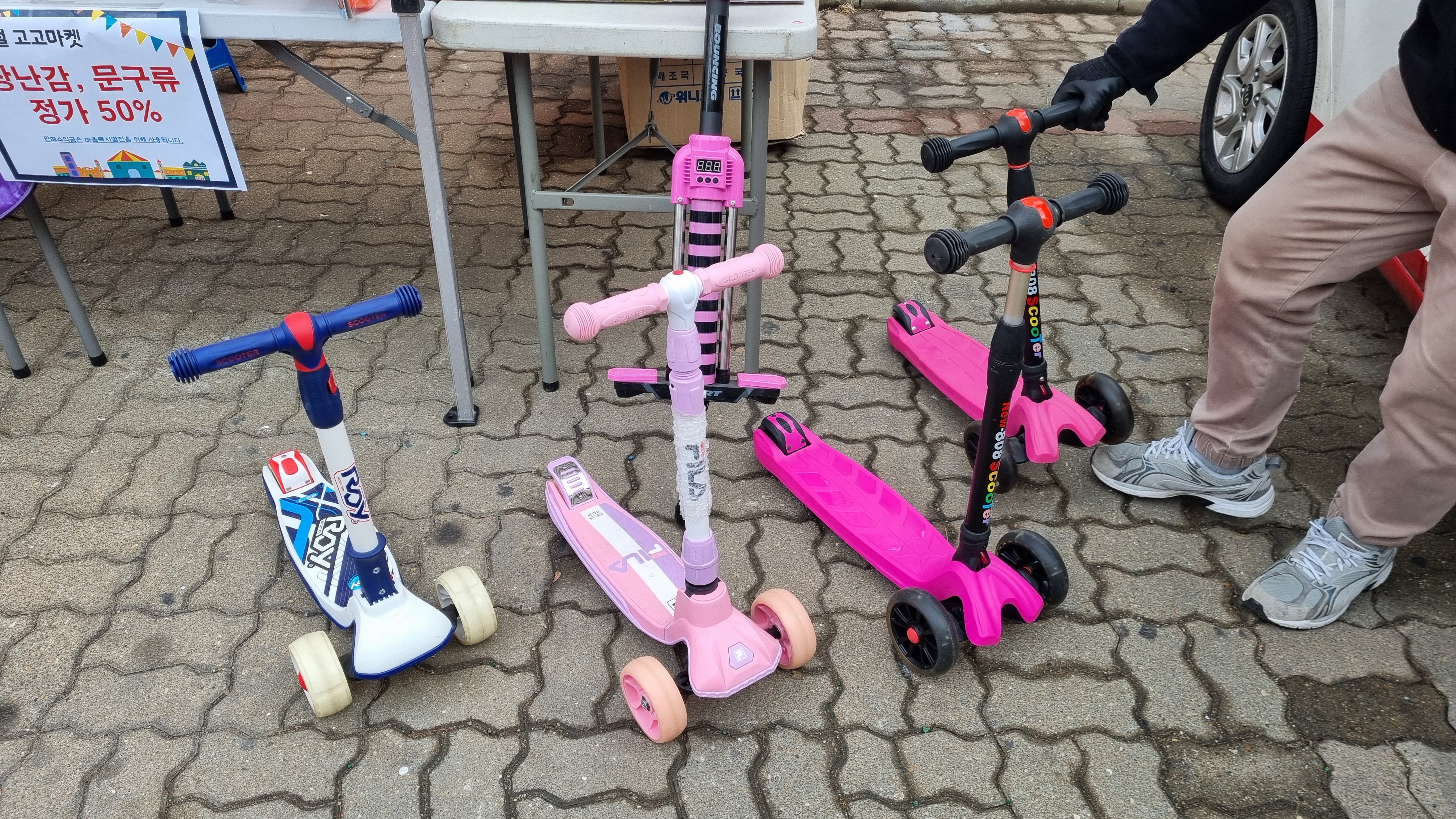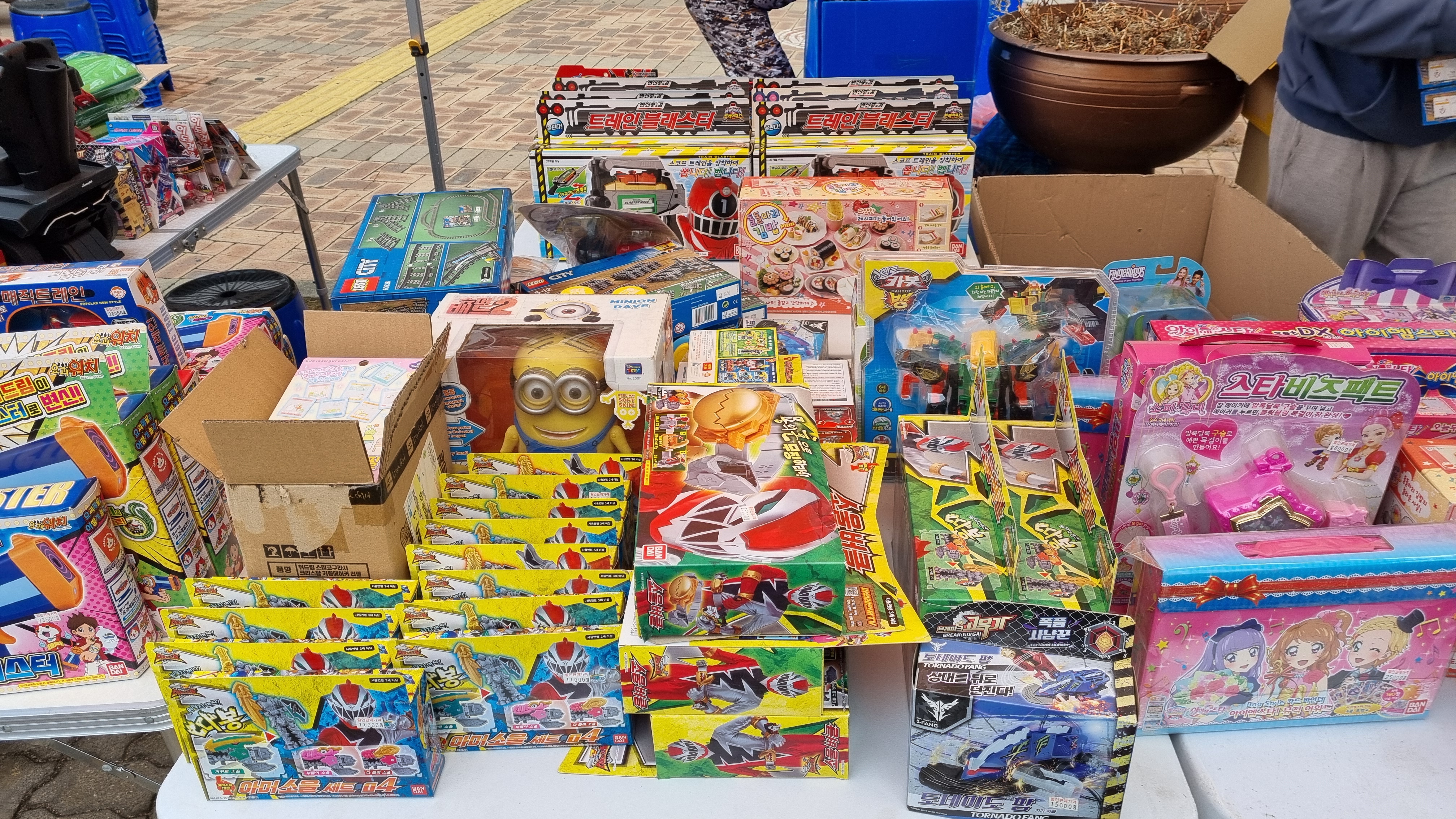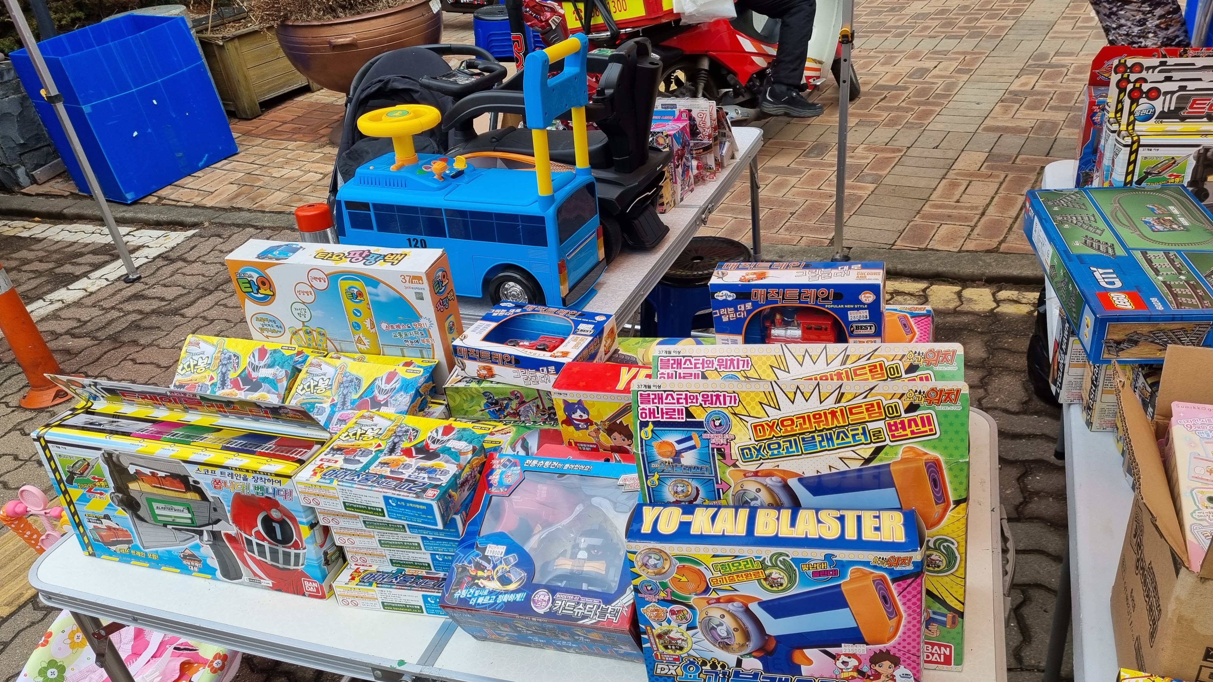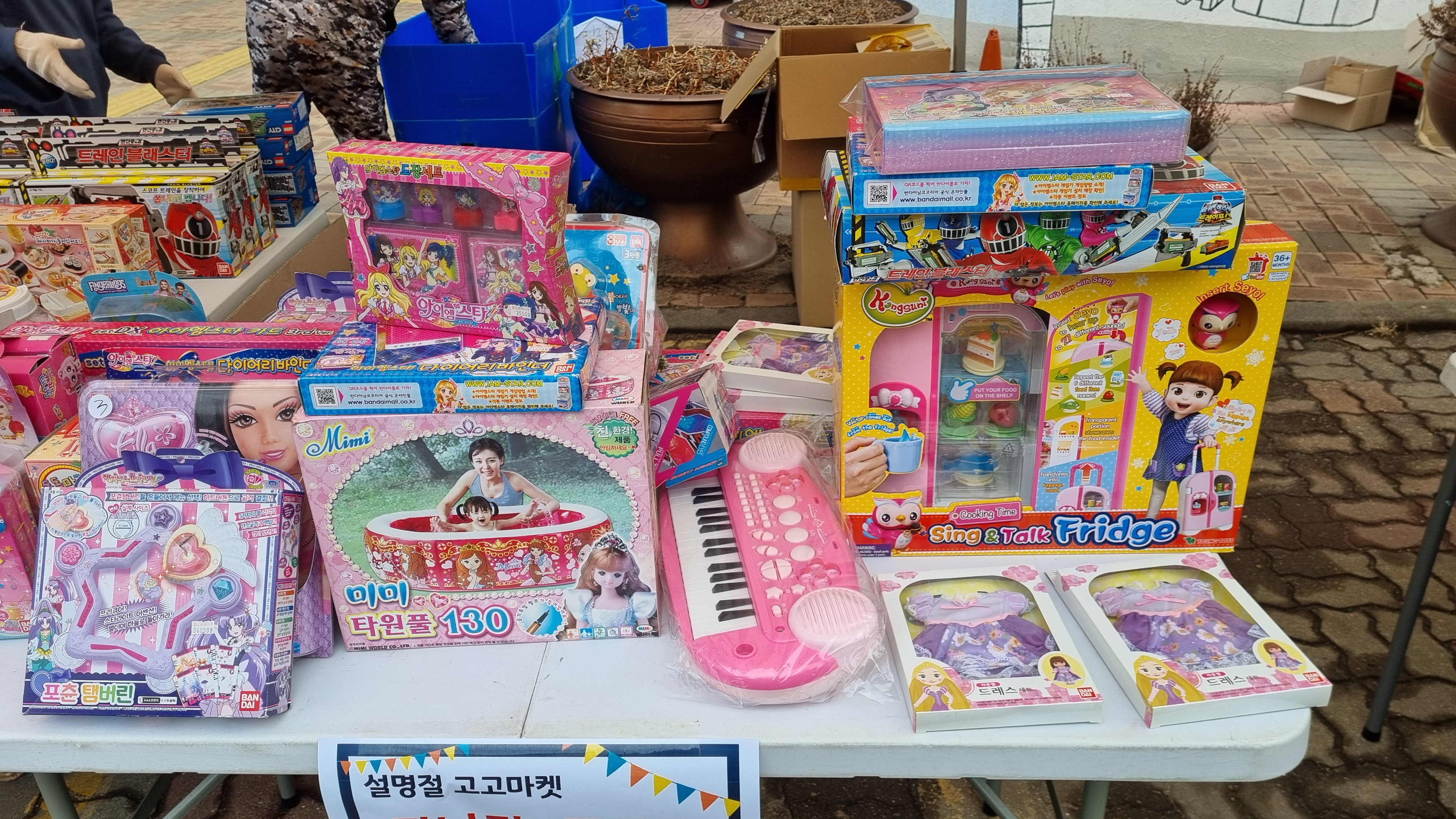 복지관 앞마당에서는 장난감, 옷, 문구용품 등 다양한 물건들이