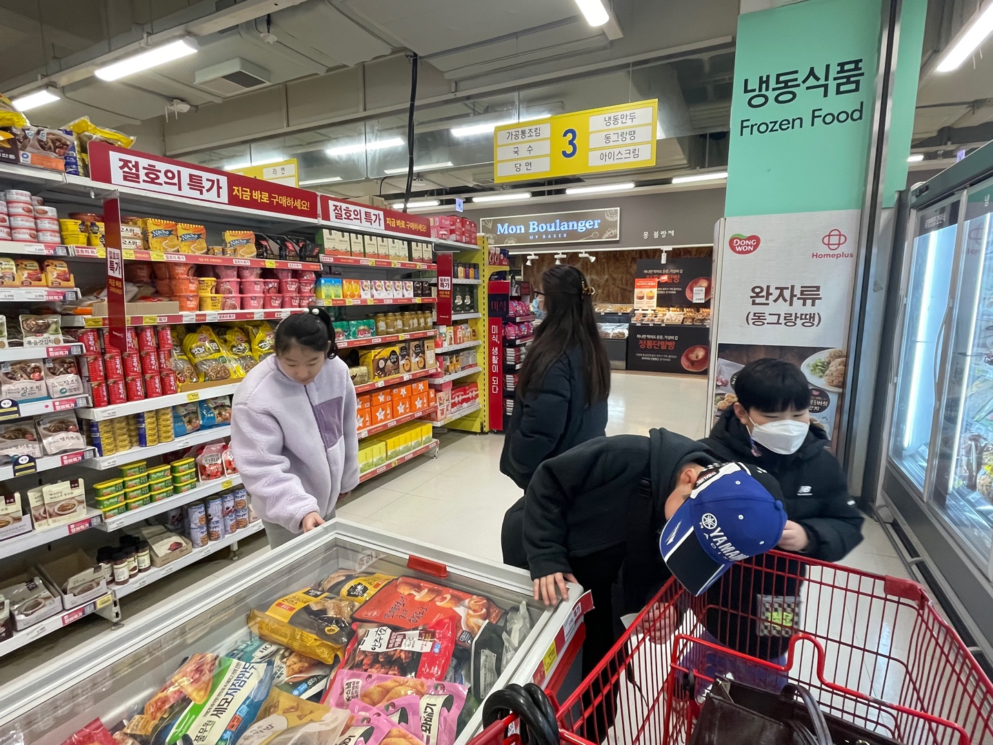 요리 활동을 약속한 21일 이애다 모임과 홈플러스에서 만났습니다.