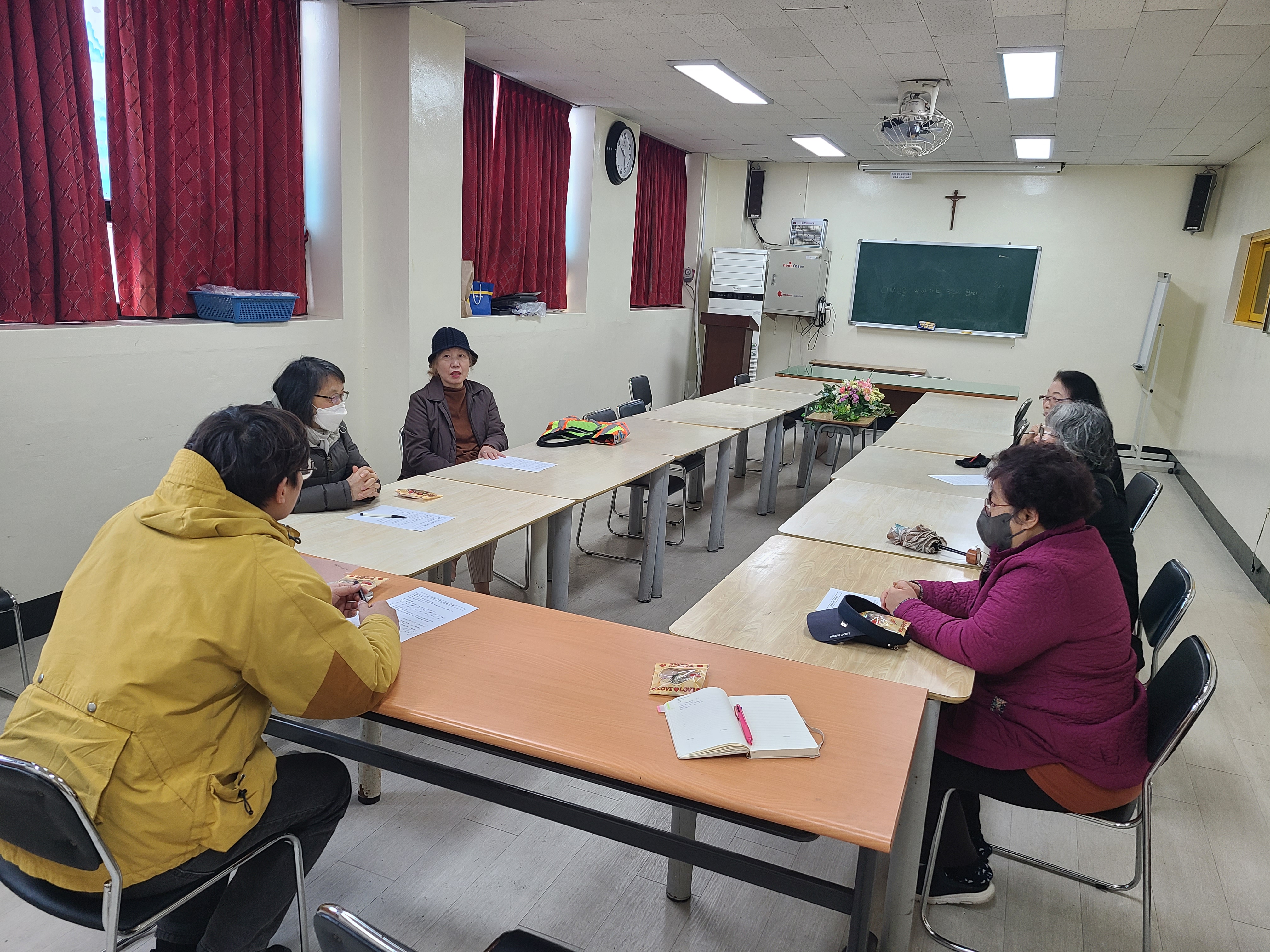 고강동 성당의 교리실에서는 두 개의 이웃동아리가 진행되고 있습니다.